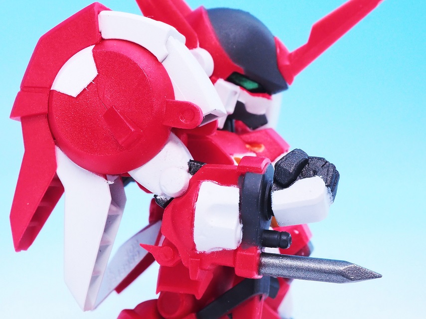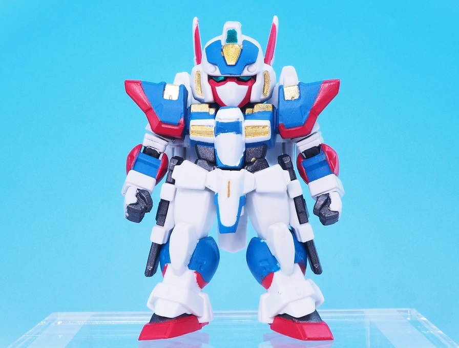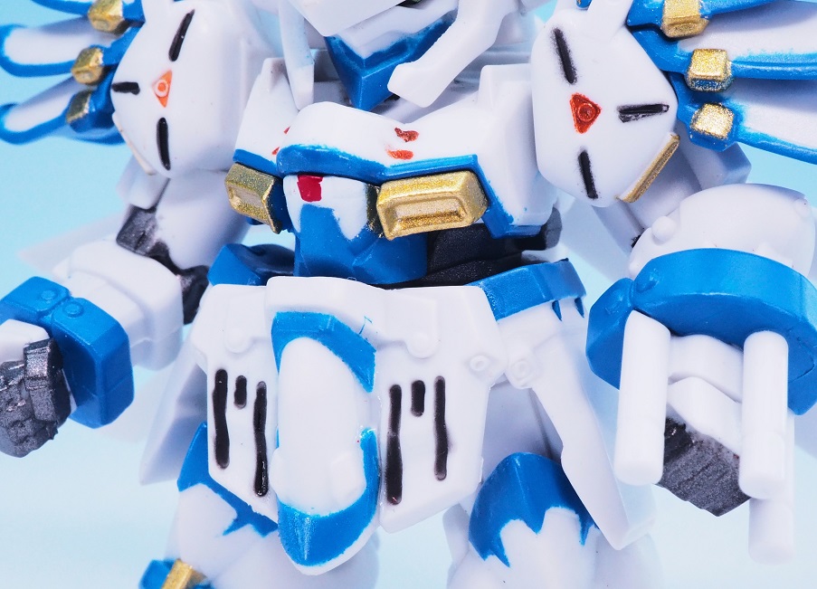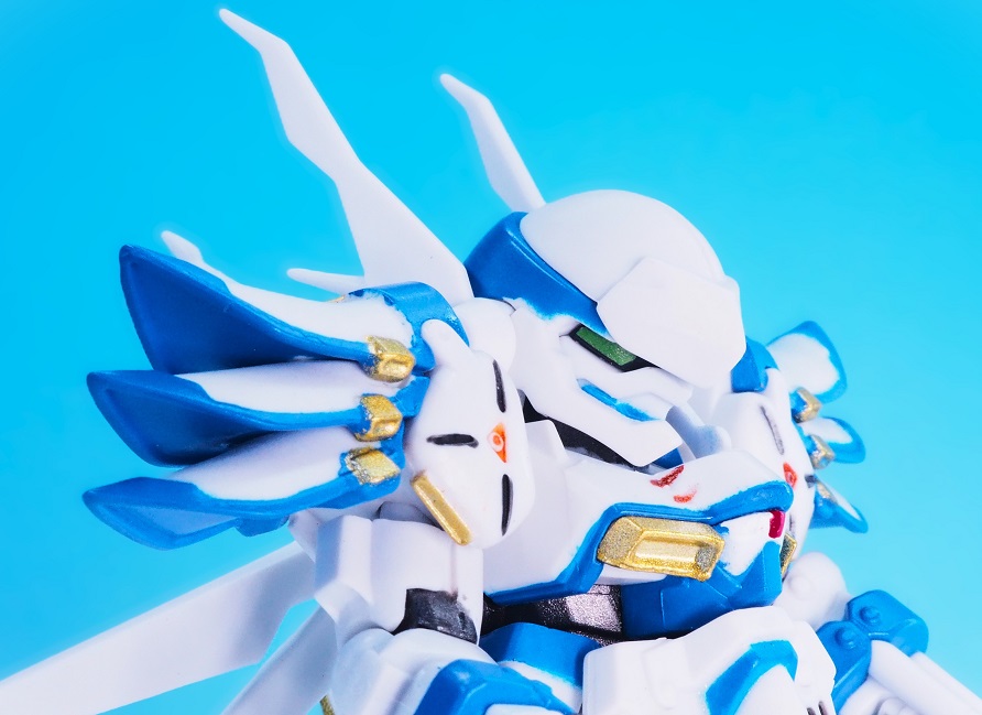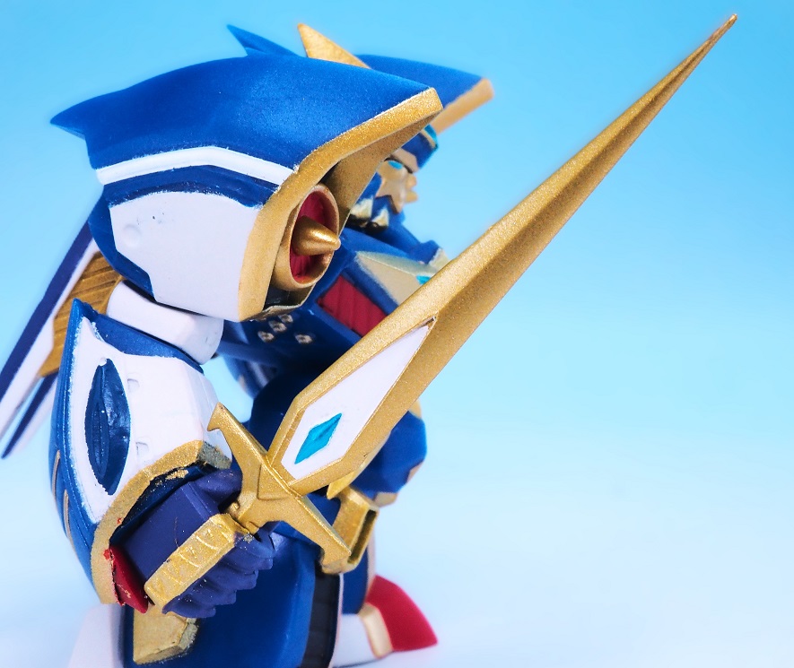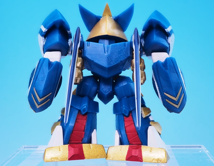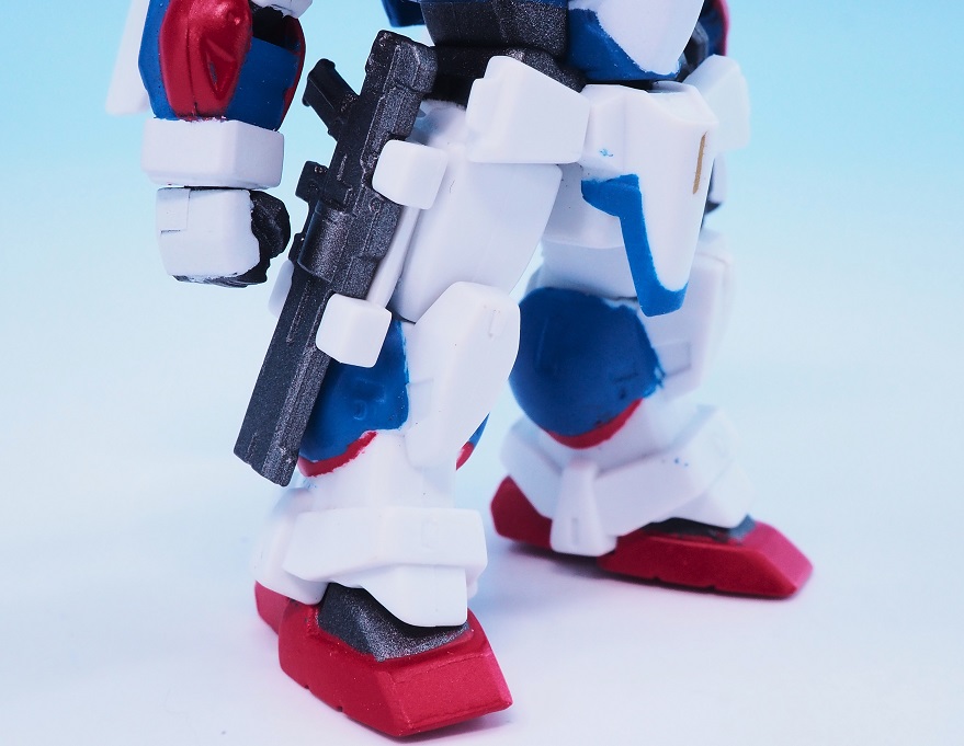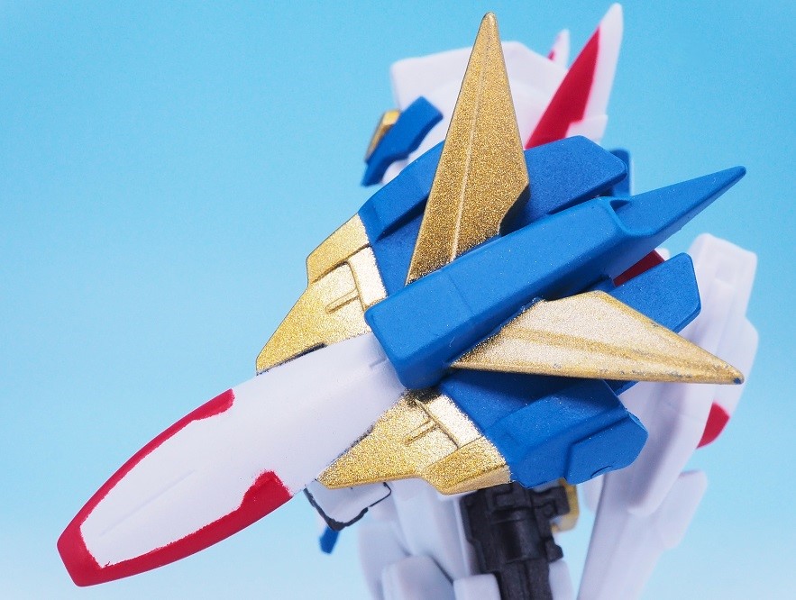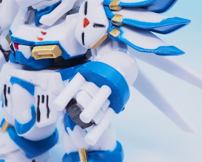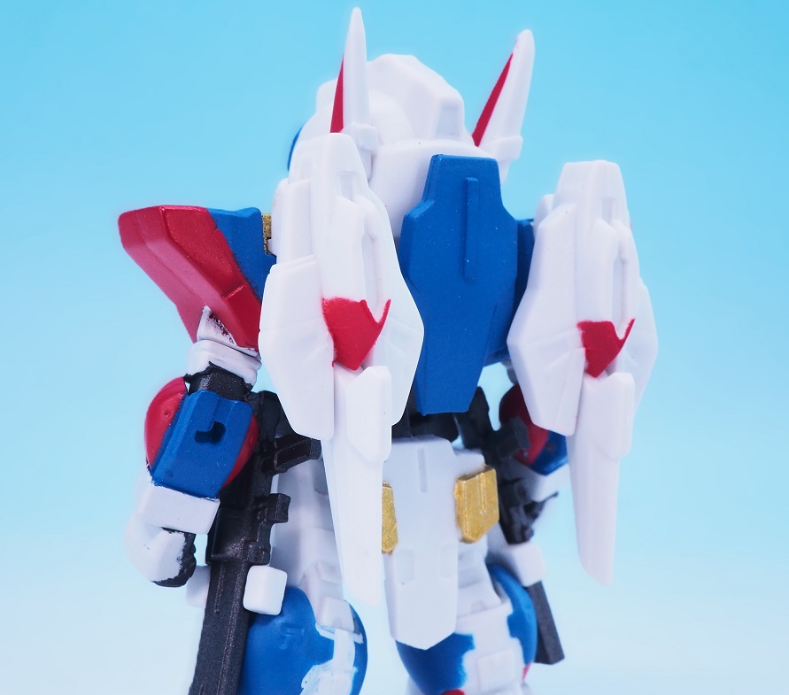 肩アーマーのブルーやゴールドも再現されていますが、やっぱりアップで見ると塗装のはみ出しが気になりますね。