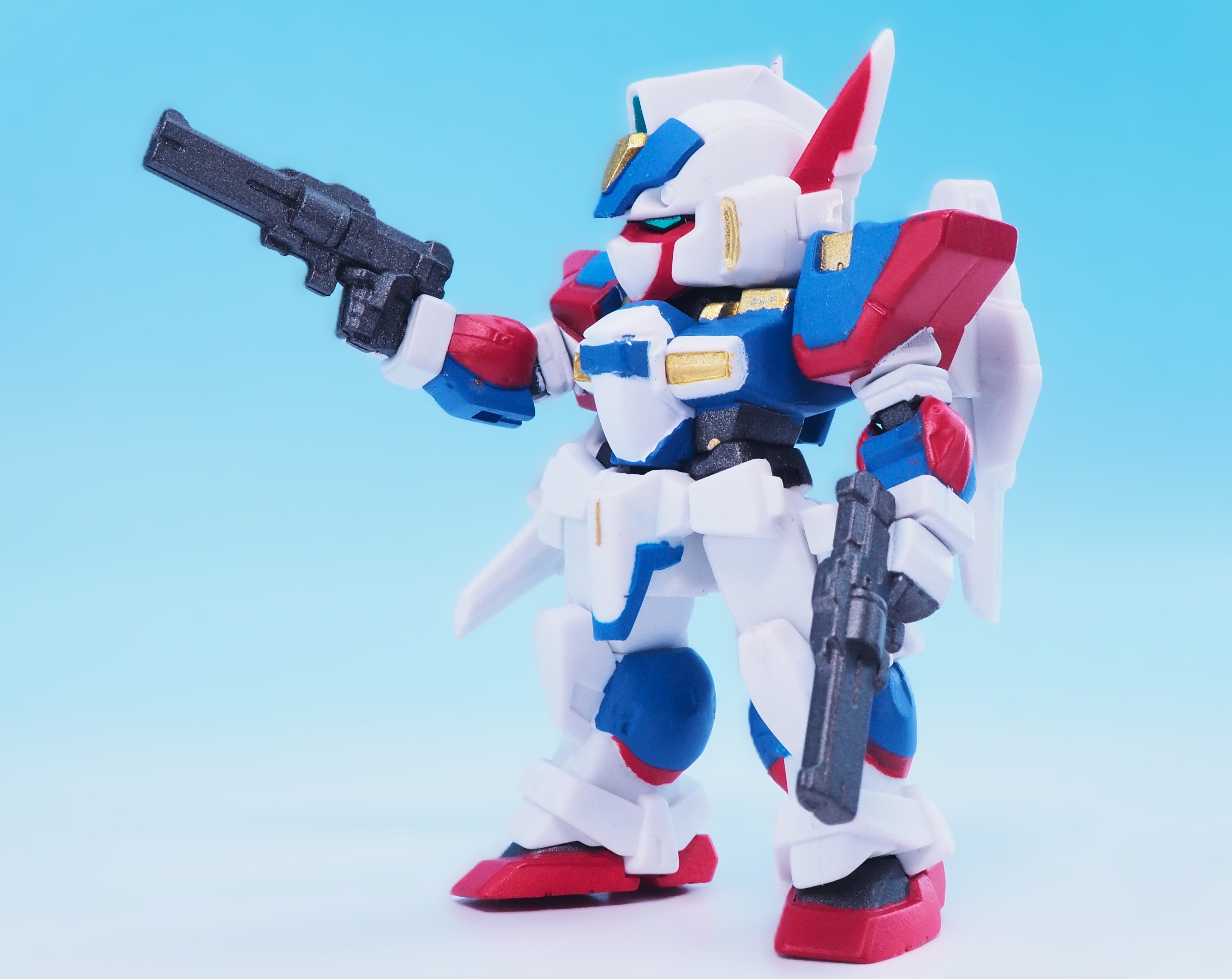 特徴的なホワイト、ブルー、レッドを基調としたカラーリングでゲームや設定画等を参考に仕上げられています。