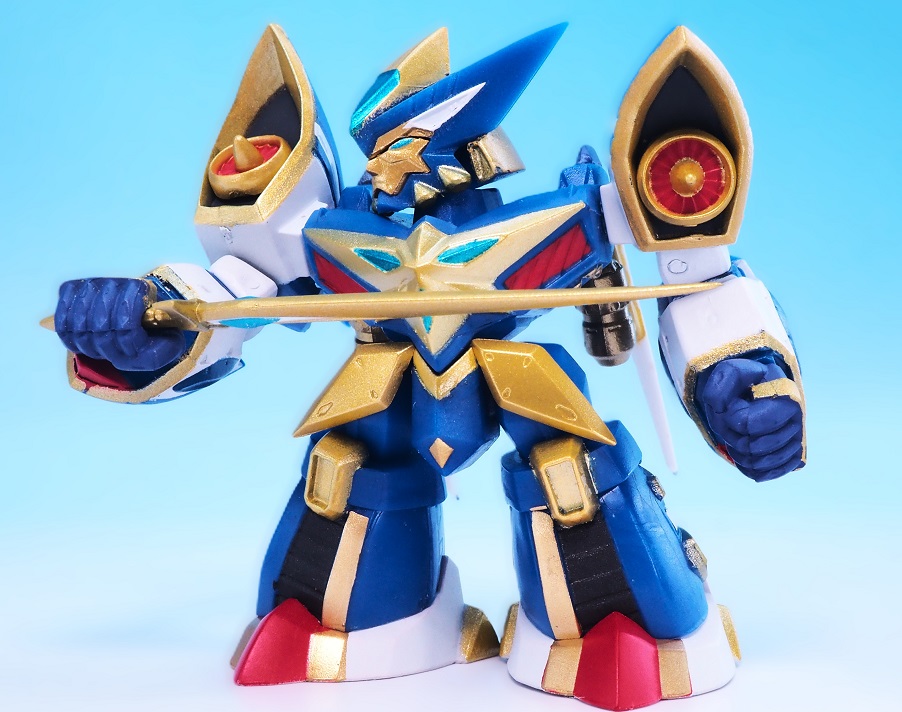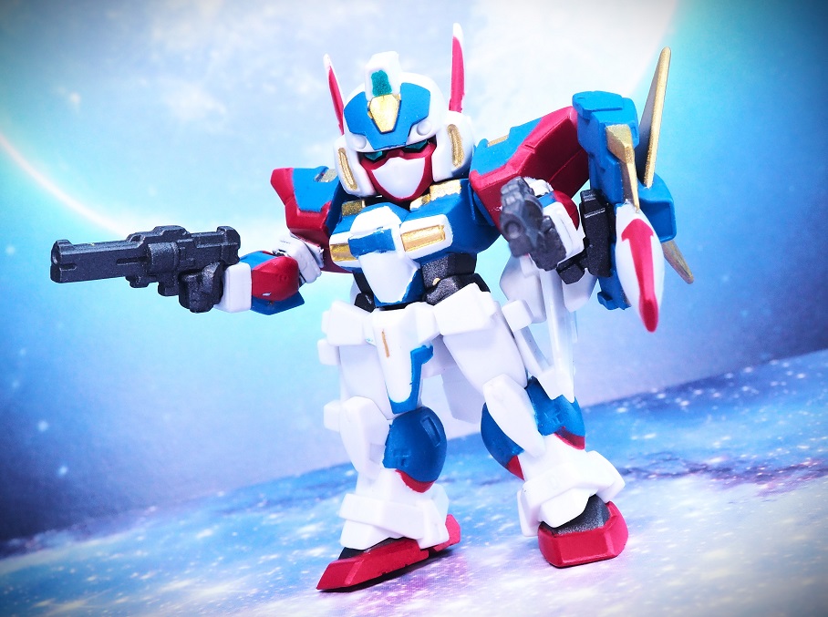 ゴールドの派手な塗装が特徴でグルンガストらしいダイナミックさがデフォルメフィギュアながらも表現されていると思います。