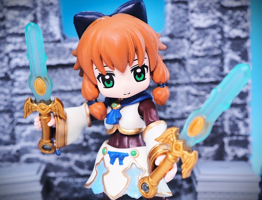 頭が大きいので等身が狂ってしますが、ガシャポンクエストのボディに乗せ換えて遊ぶのも面白いかも。