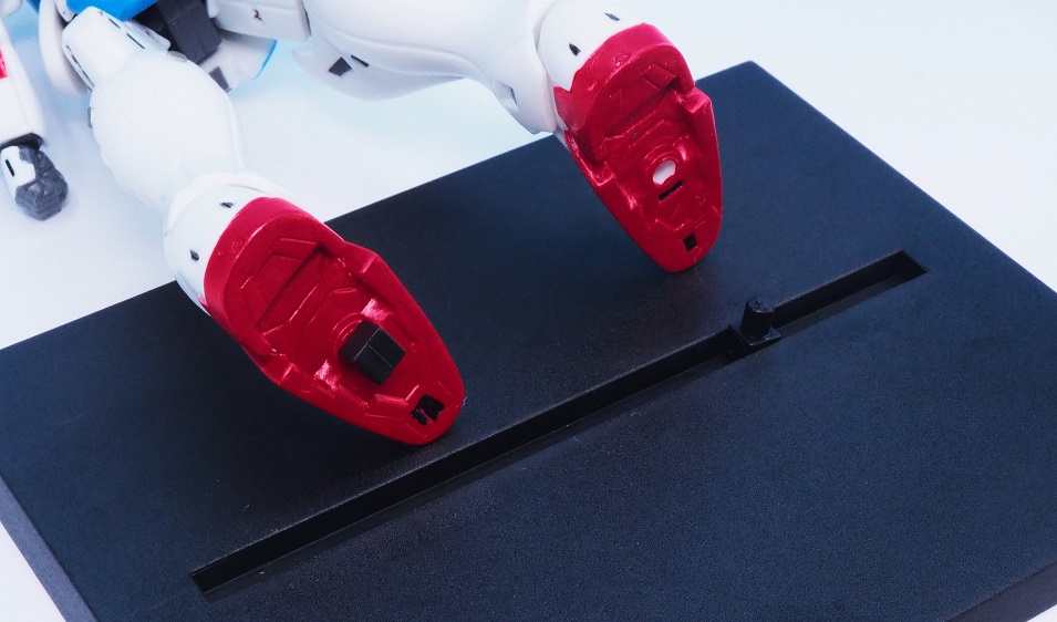 足裏には四角いパーツが取り付けられており、ベースの溝に差し込む事でディスプレイ可能。