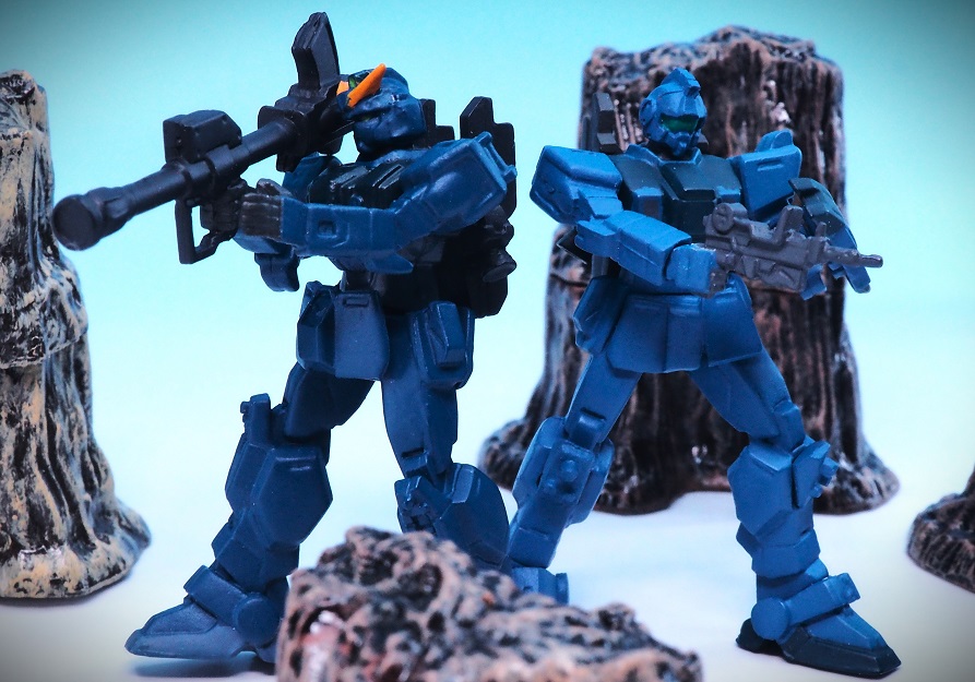 濃いブルーがメインの夜間迷彩仕様だと思いますが、ブルーディスティニー2号機みたいで面白いですね。