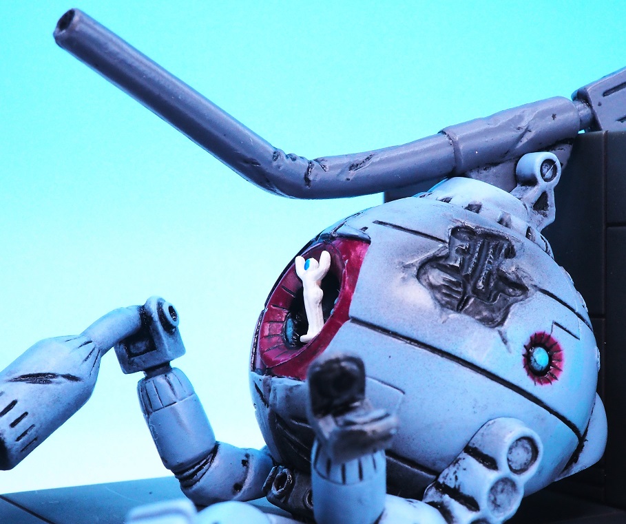 プラスチック成型でしっかりとした筋彫りとシャドーの効いた塗装が施されています。