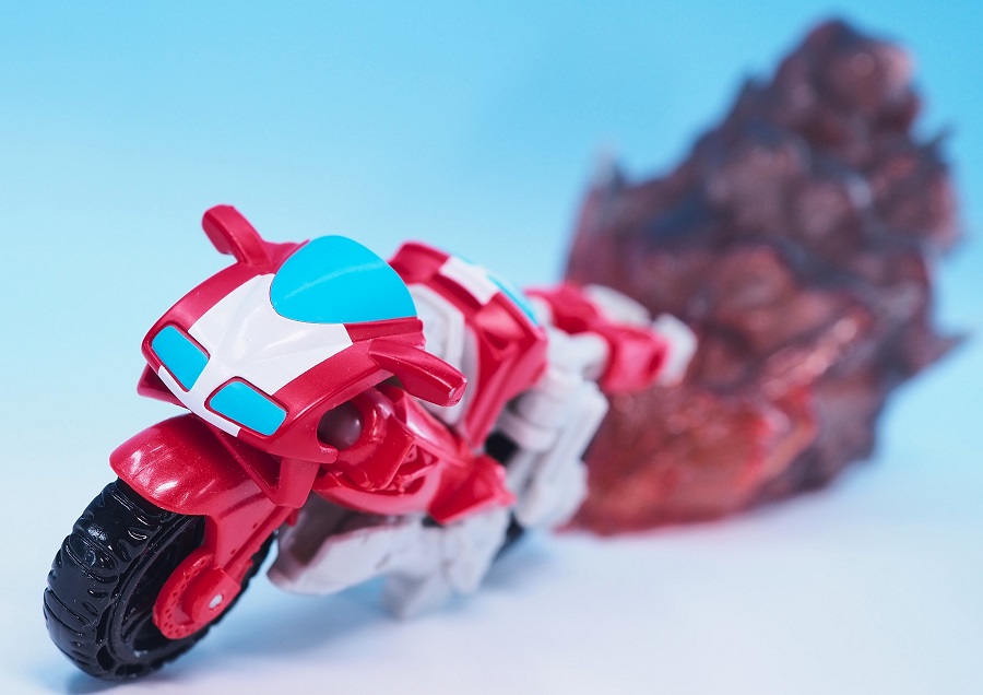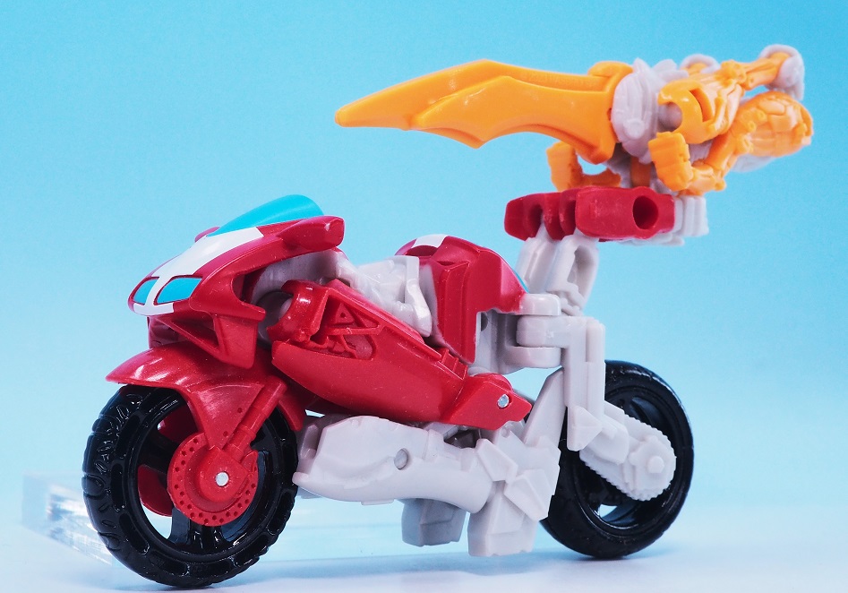 バイク系TFの付加価値となる遊びですが、流石に今回のアーシーだとサイズが小さいですね。