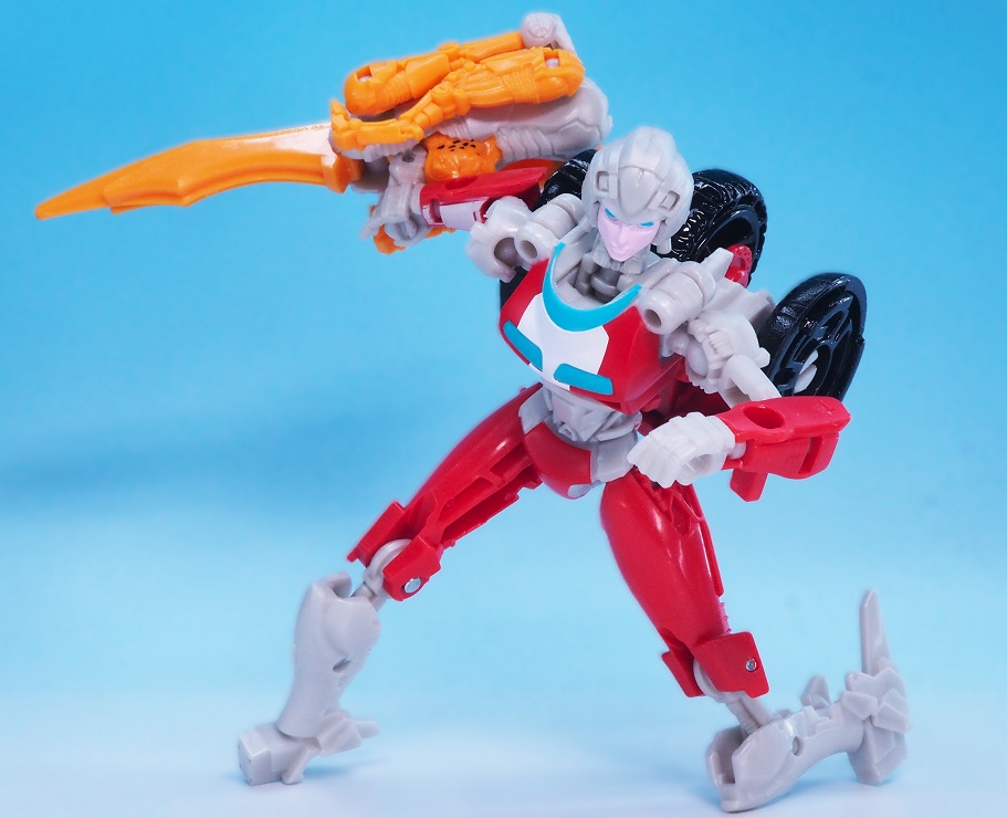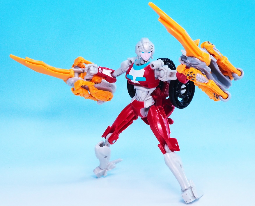 毎度おなじみバイク型にトランスフォームするオートボットの女戦士。