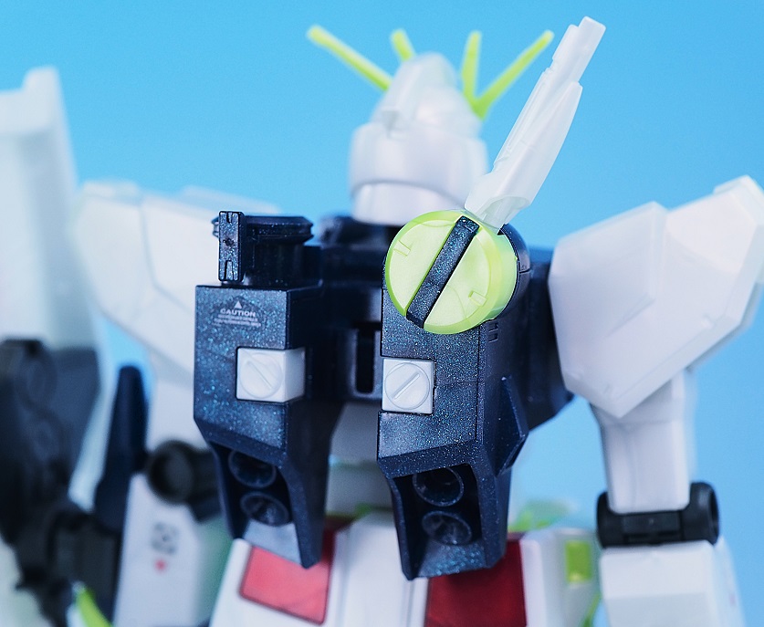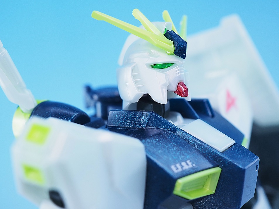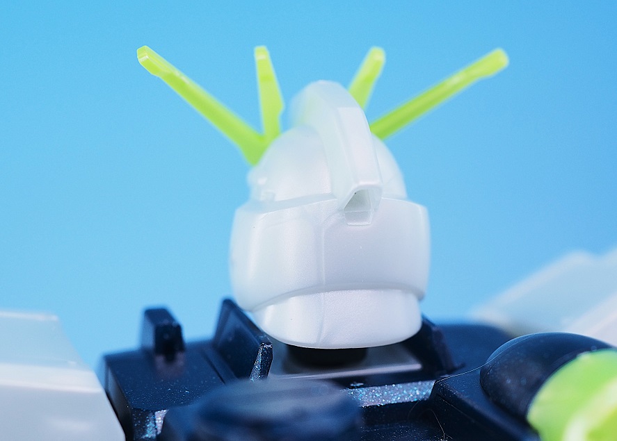 ツインアイと頭部センサーはラメ入りクリアグリーンカラーになっています。