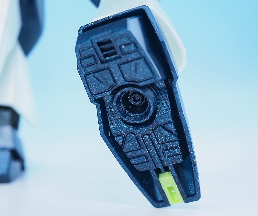 膝と膝下周りのスラスターも細かな色分けで、つま先まで再現されているところに驚きです。