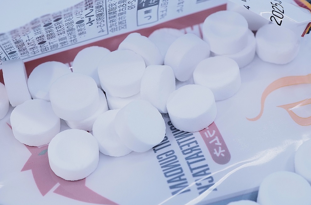 お菓子はサイダー味のラムネ。