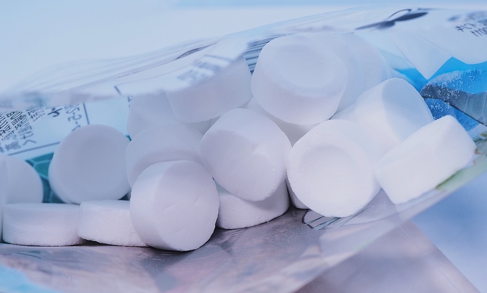 お菓子はサイダー味のラムネ。