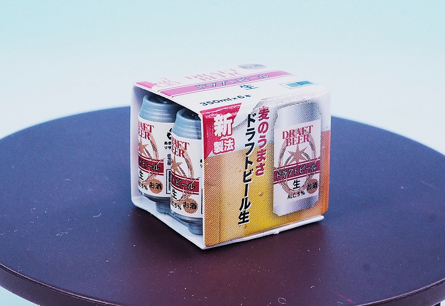 箱売りや潰れた缶など多彩なバージョンがセットになった 缶ビール、缶チューハイ のミニチュアフィギュアとなっております。