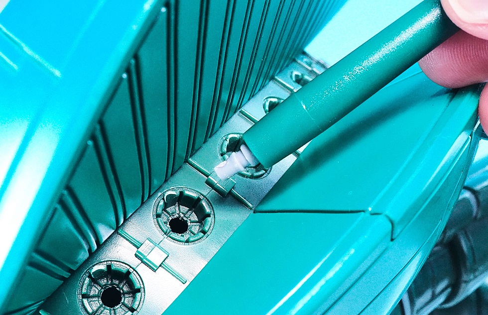 メカディテールの掘りがかなり深いので、影でスミ入れされているように見えますね。