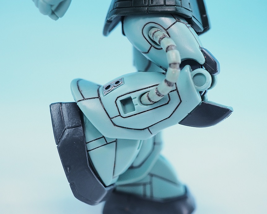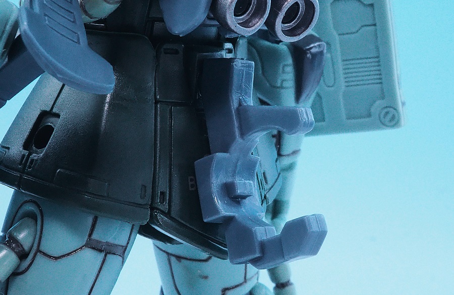 初期のMIAでは一体成型で無可動でしたが、ザクバズーカも大幅にグレードアップしています。