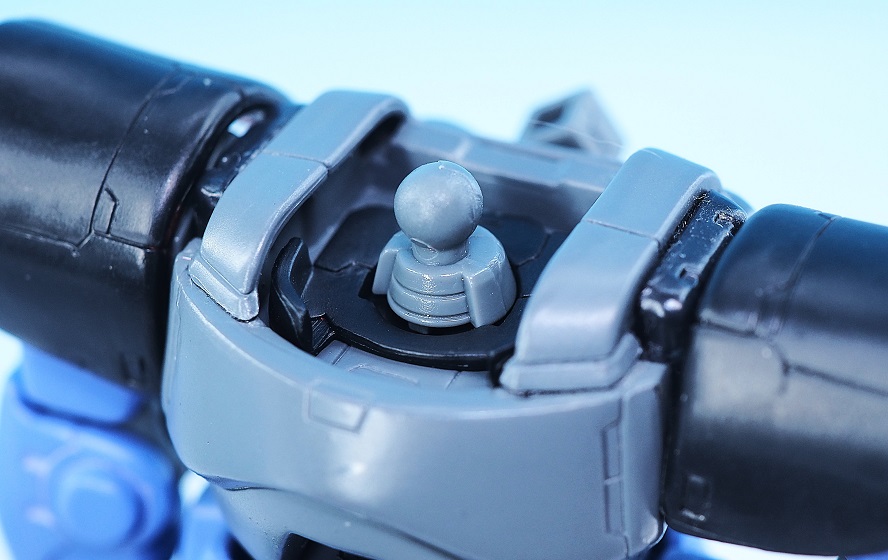 黒い外装がボールジョイント接続で肩の跳ね上げや前後に向きを調整が可能。