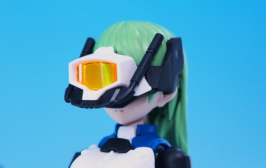 サイドヘアーをアタッチメントパーツと差し替えて、ゴーグルを取り付けています。