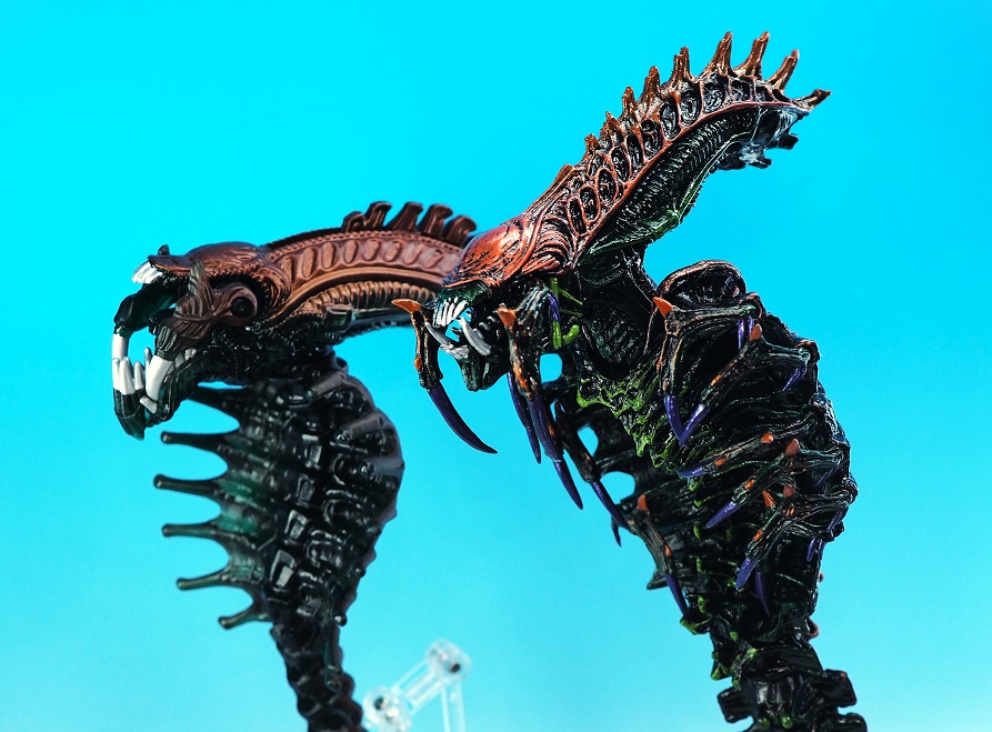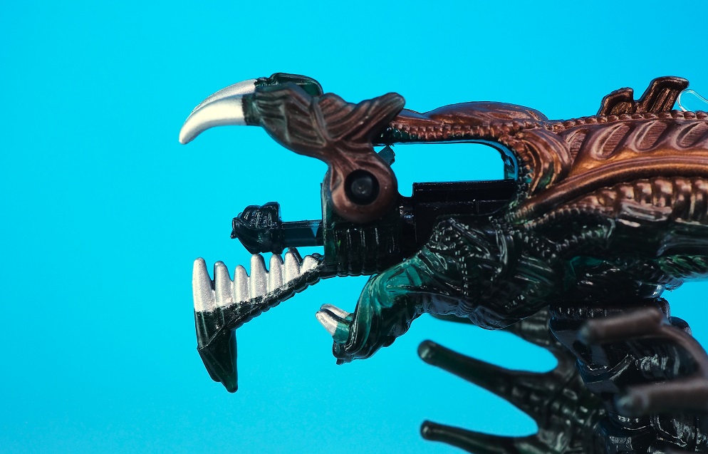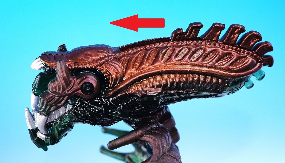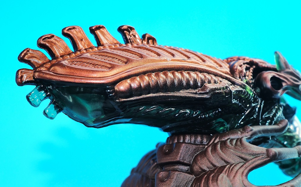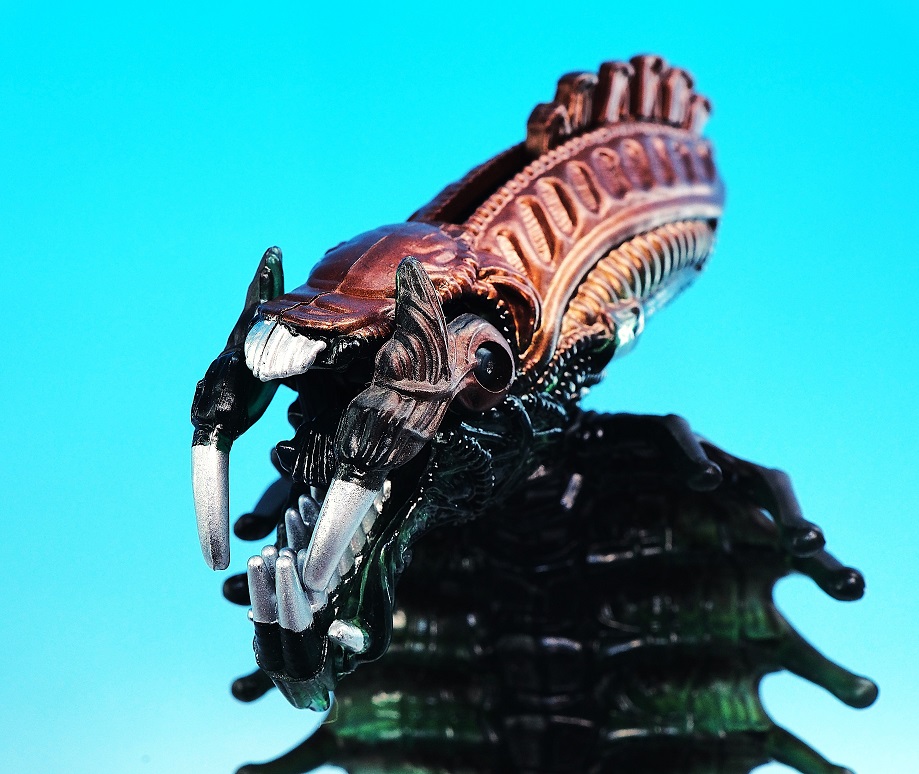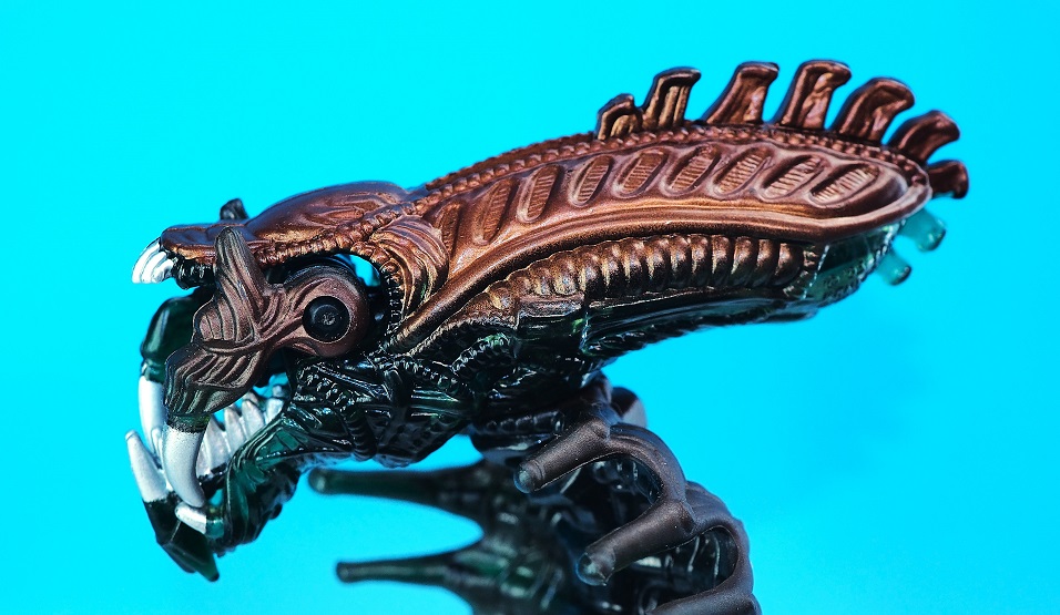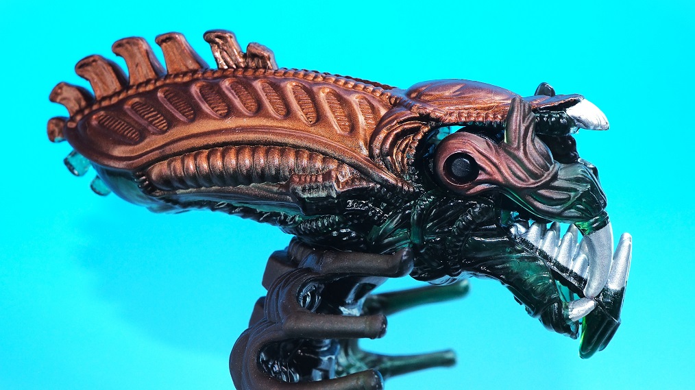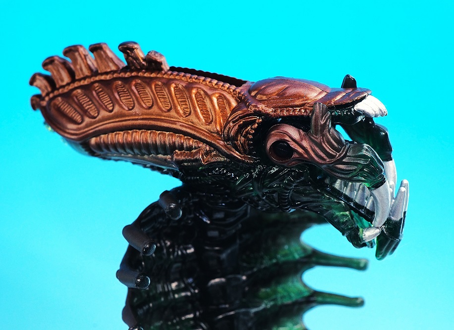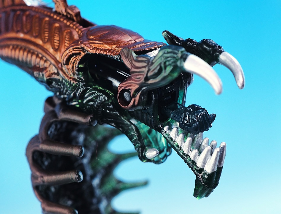 通常のエイリアンとは異なり上顎には大きな牙、下顎にも複数の牙が生えてます。