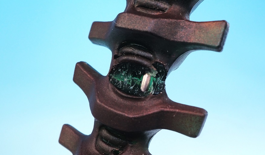 くっきりと浮き上がった背骨の造形が脊髄のようにも見えますね。