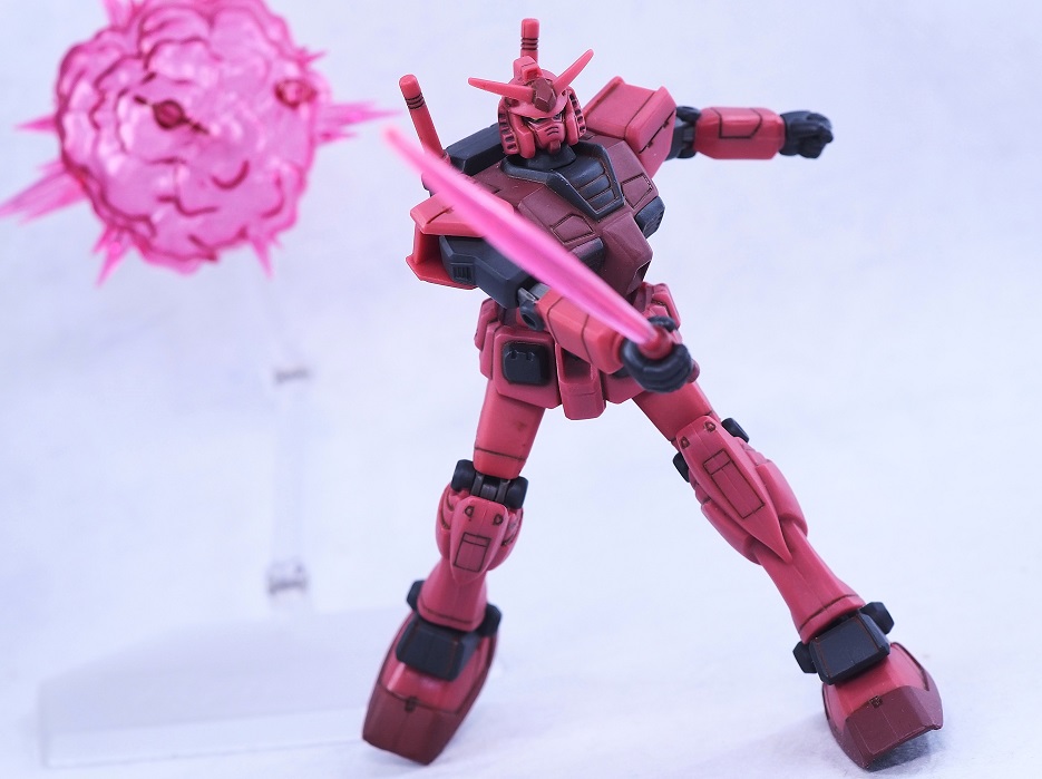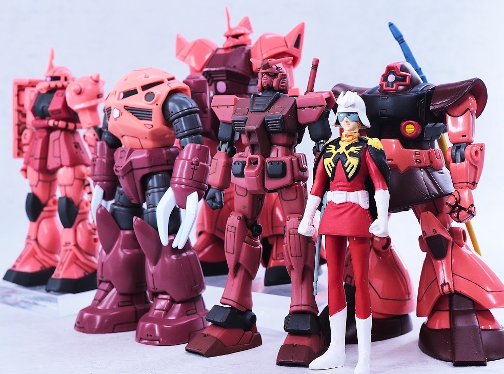 シャア専用ザクⅡやシャア専用ゲルググとは違い全体的に濃いレッドのボディカラー。