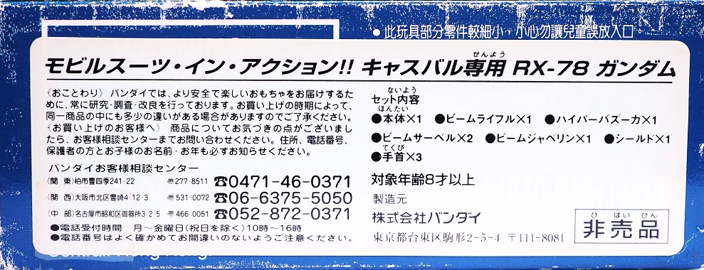 パッケージ裏表紙は通常のガンダムと同じ写真の使い回しですが、底面のラベルは専用の物に変更されています。