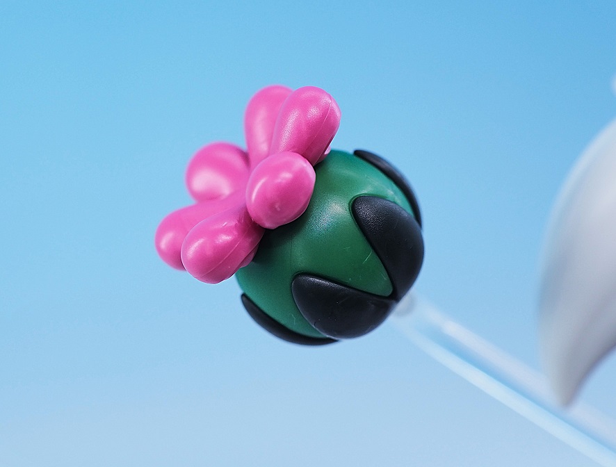 背中の3ミリ穴にはクリアの支柱を介して「花爆弾」を取り付けます。