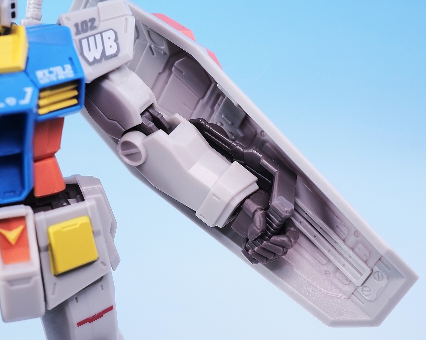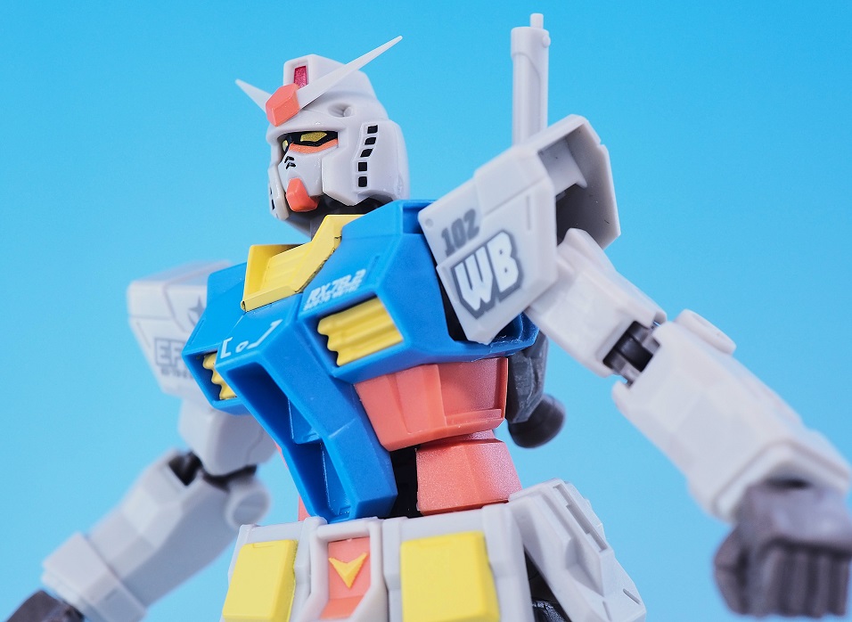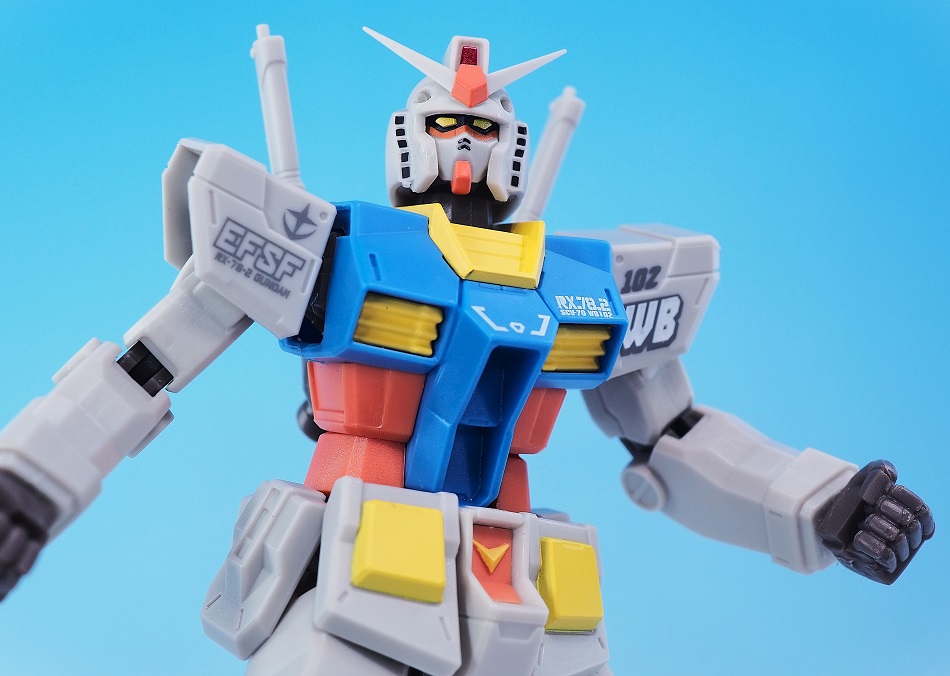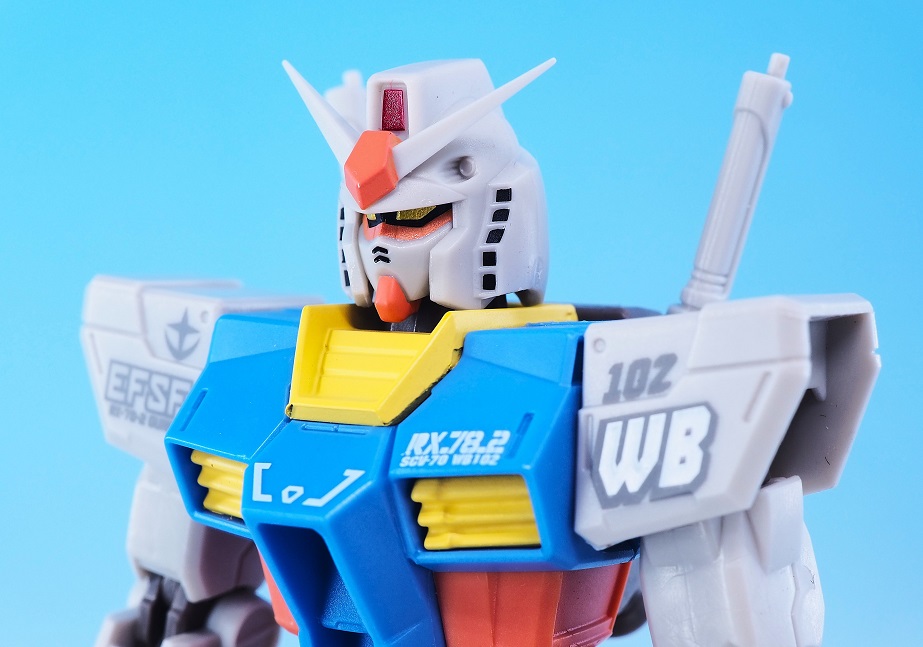 通常のガンダムはパキッとした色の濃いカラーリングだったのでかなり印象が変わりましたね。