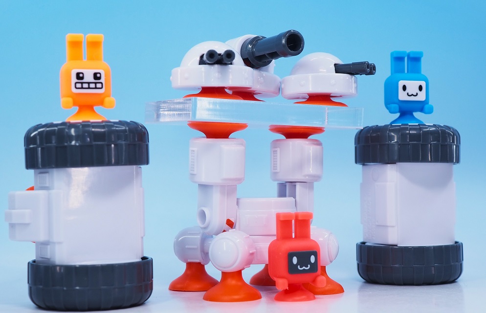 可愛らしいキャラクターと吸盤を使った合体や組み換えが可能なメカがウリの子供向けホビーとなっております。