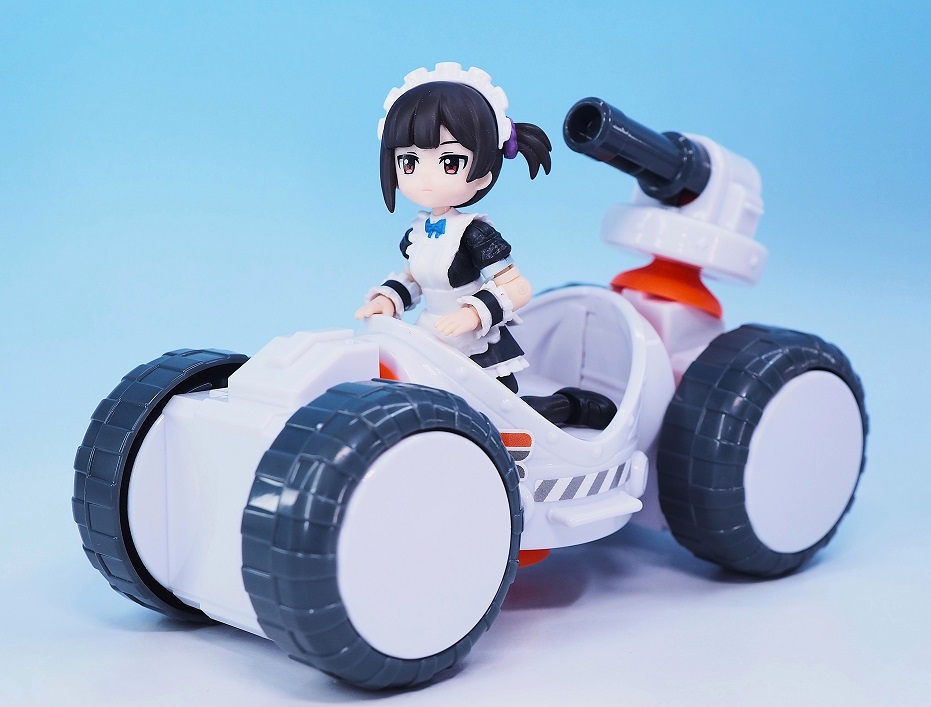 中身は大型キャノンとタイヤを備えたメカのパーツとキャラクターフィギュア、カスタム用のシールが同封されています。