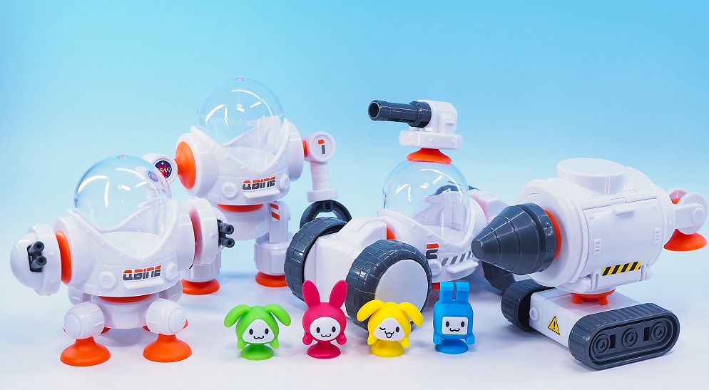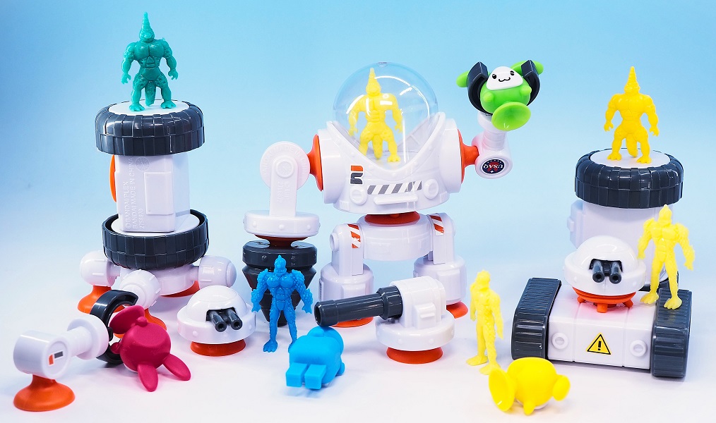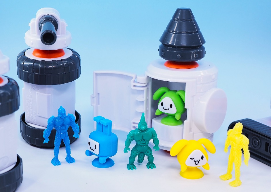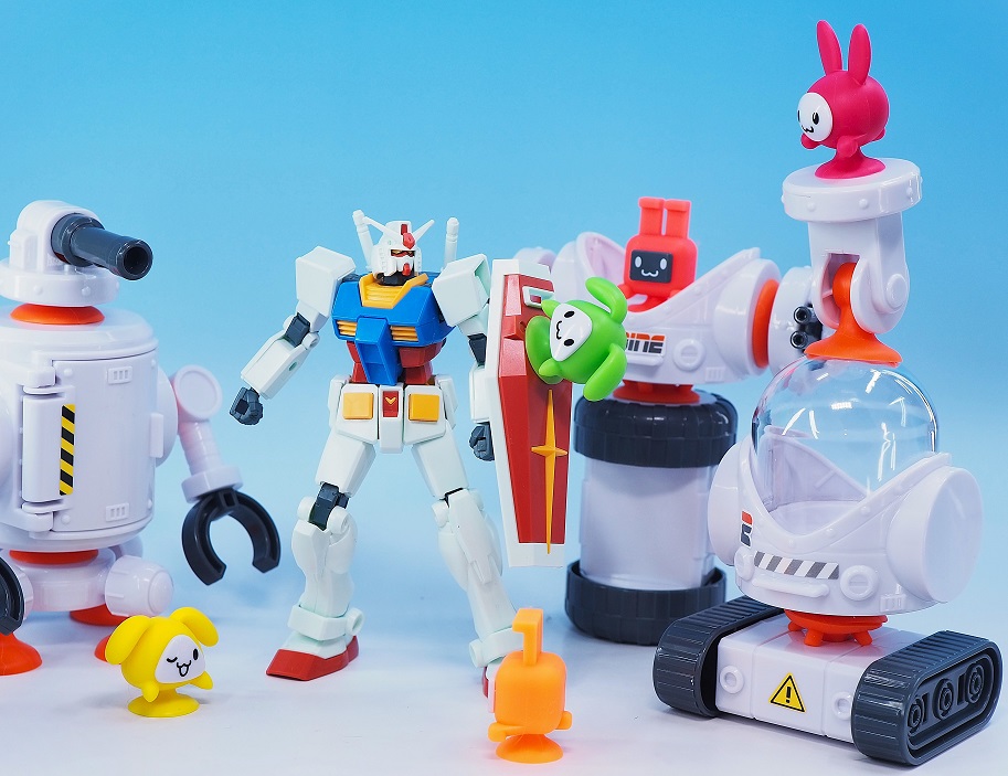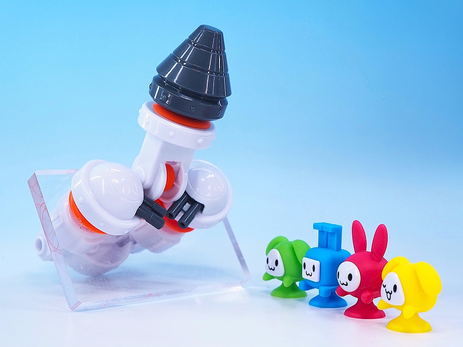 可愛らしいキャラクターと吸盤を使った合体や組み換えが可能なメカがウリの子供向けホビーとなっております。