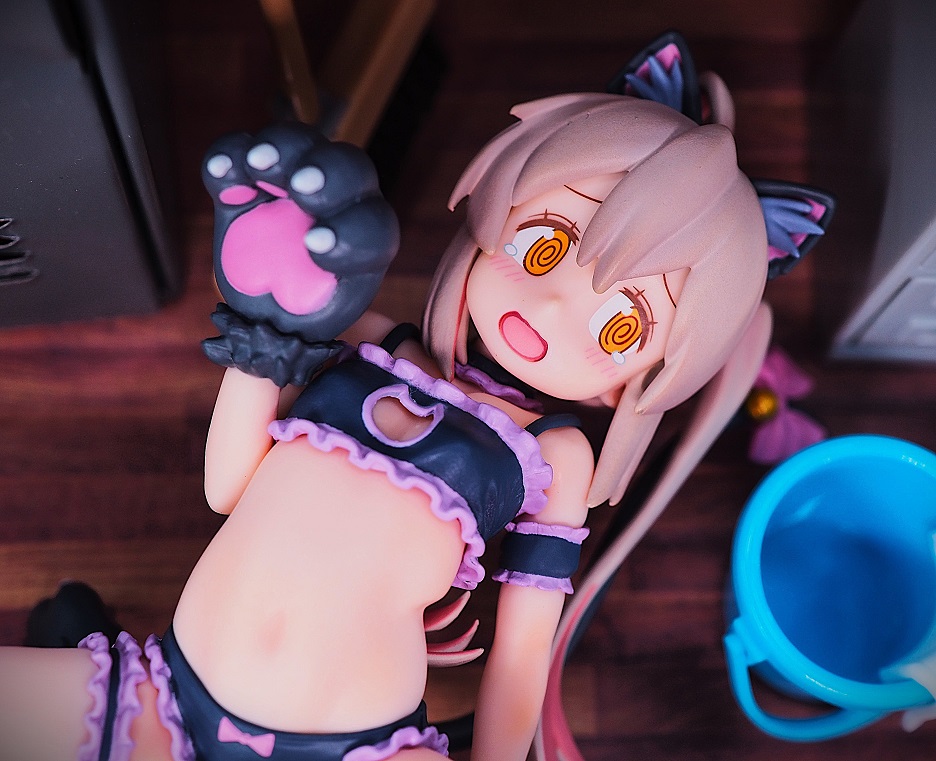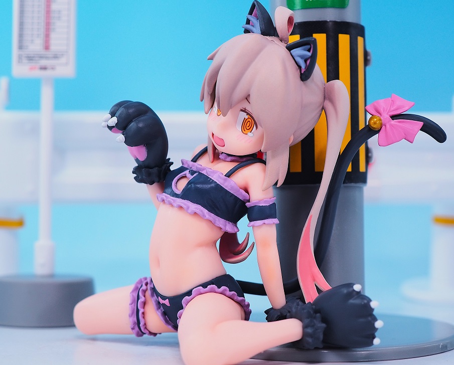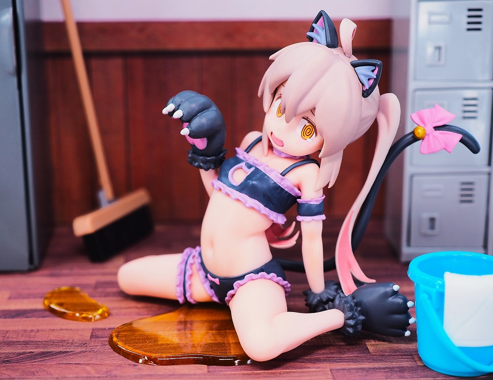 下着のような衣装とネコミミを付けた姿のまひろちゃん。