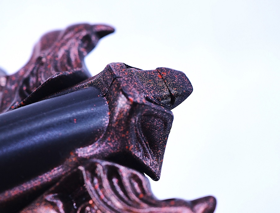 ブラックの成形色にカッパーゴールドがまばらに吹きかけられたような独特な彩色になっています。