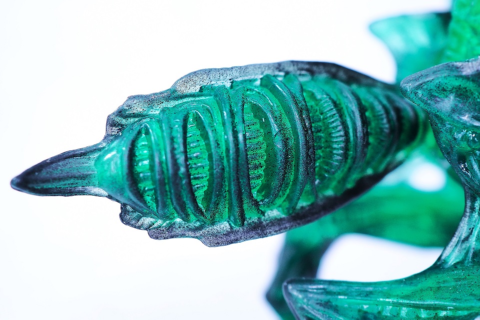 エイリアン特有の長い尻尾ではなくカマキリ側に寄せたデザインで、先端にツメのようなものが付いています。