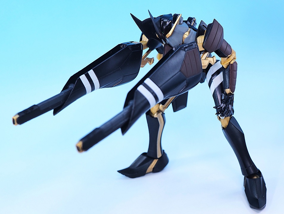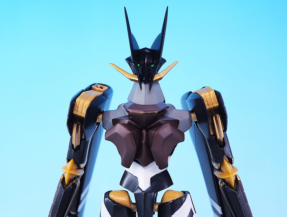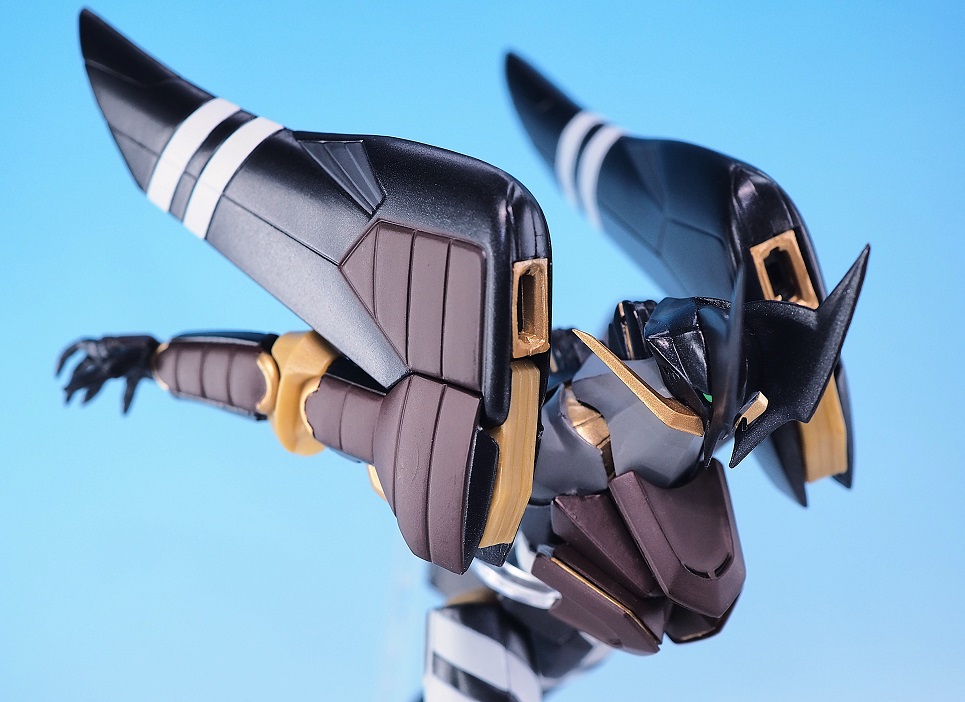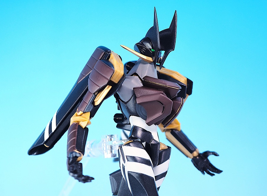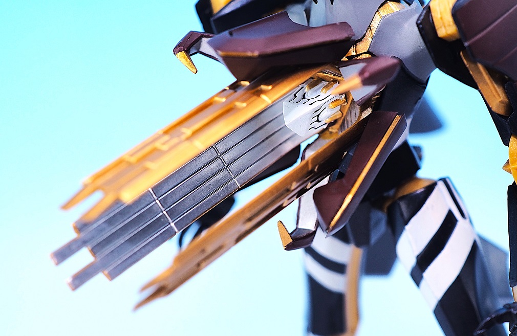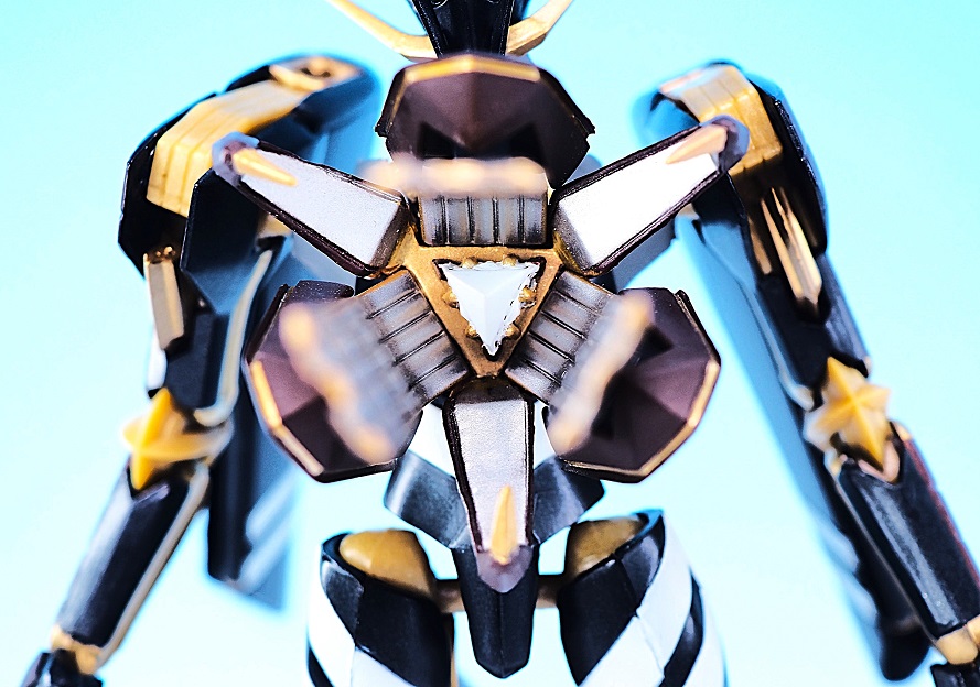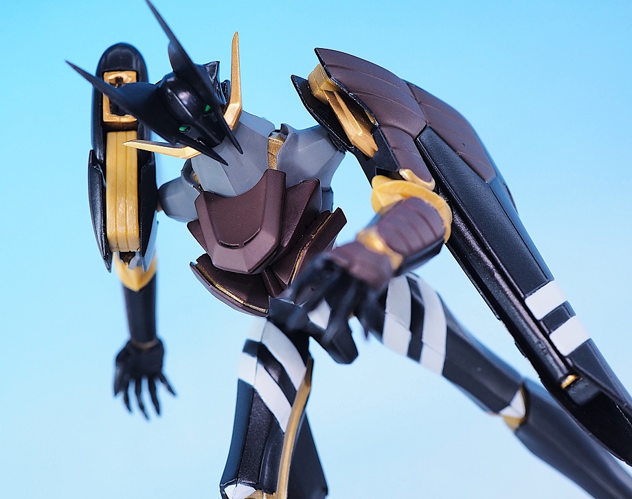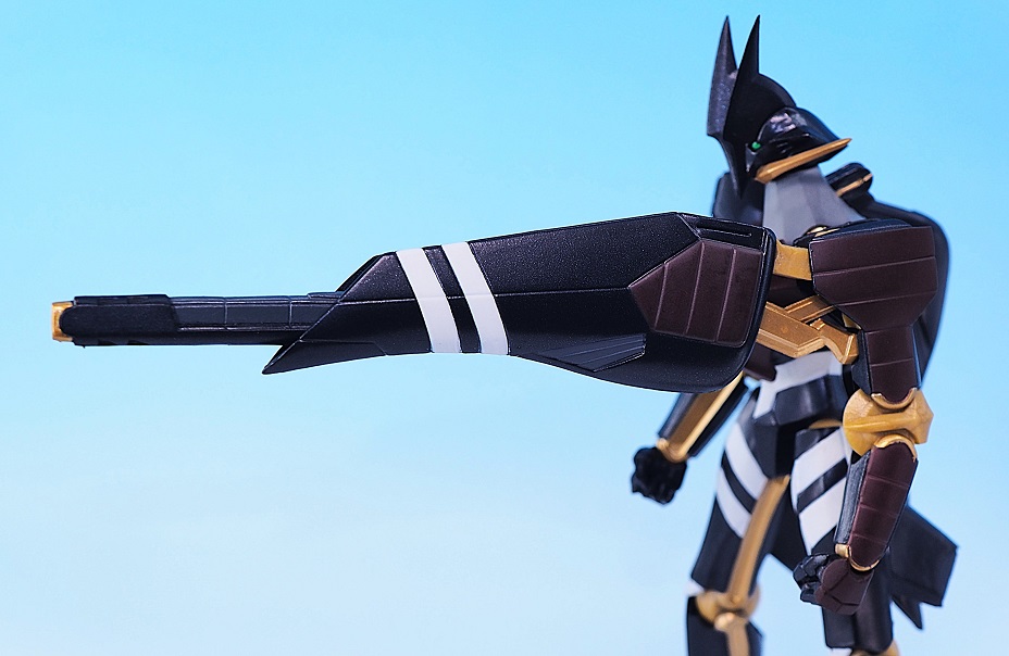 関節部は本来ならゴールドが正しい配色ですが、フィギュアでは可動を考えて黄土色の成形色になっています。
