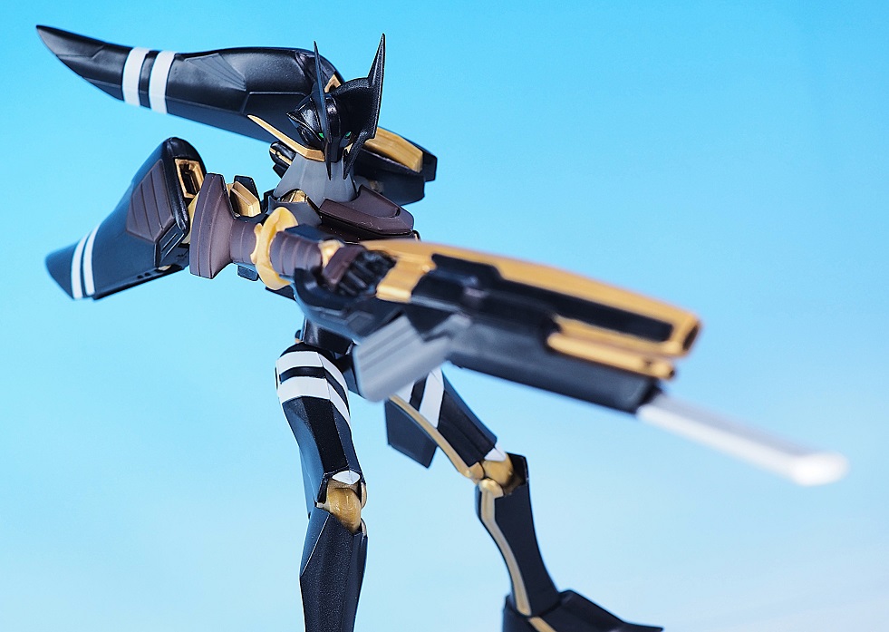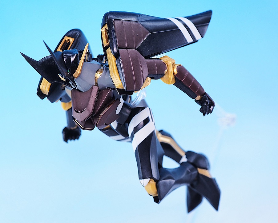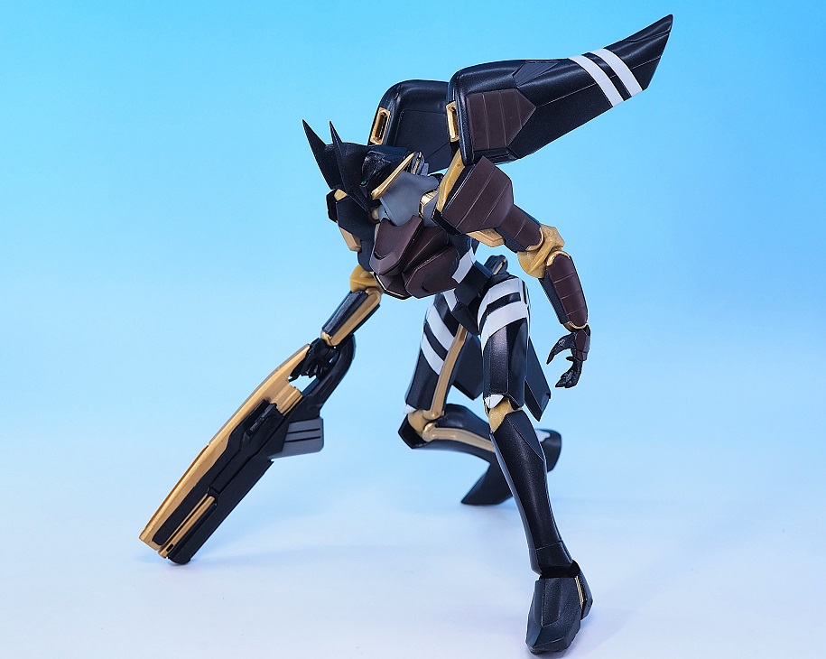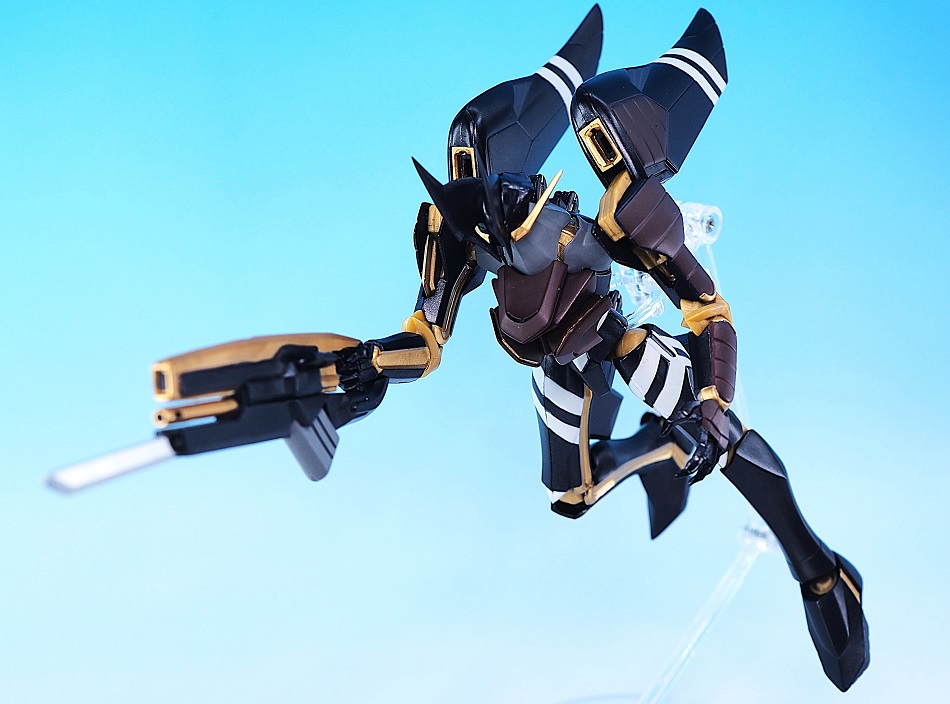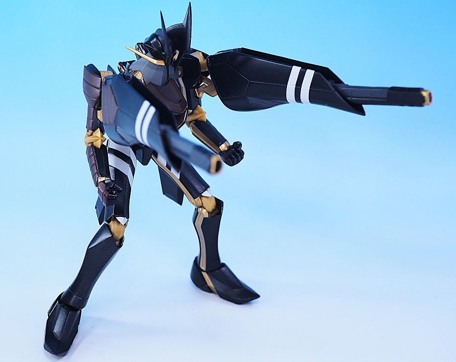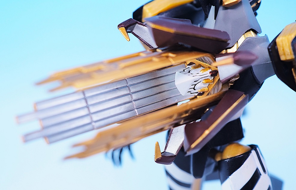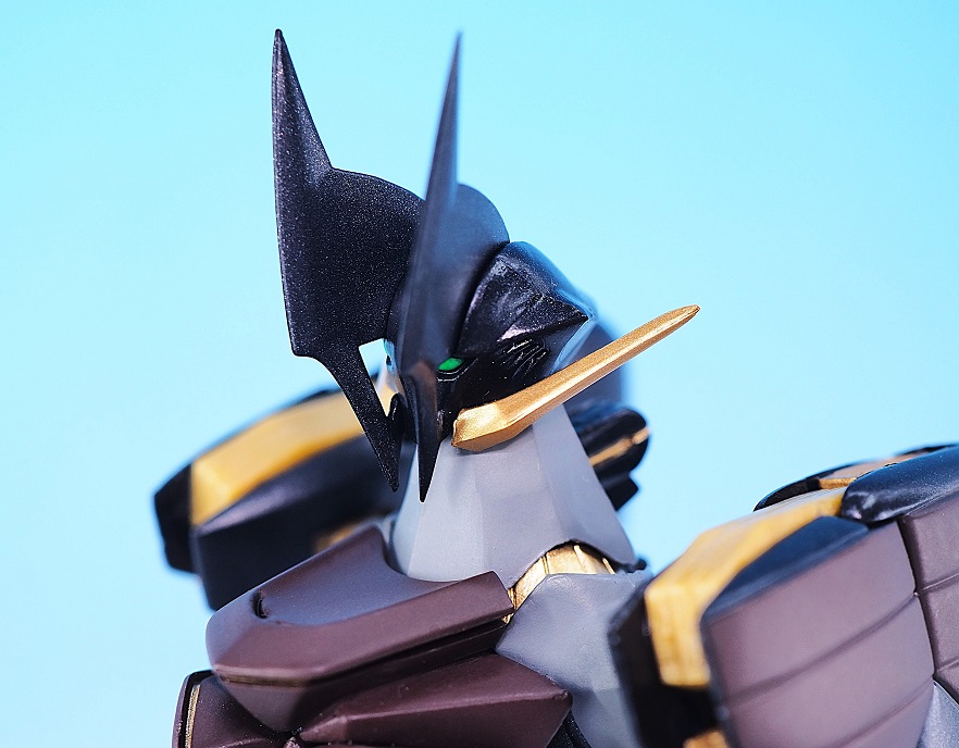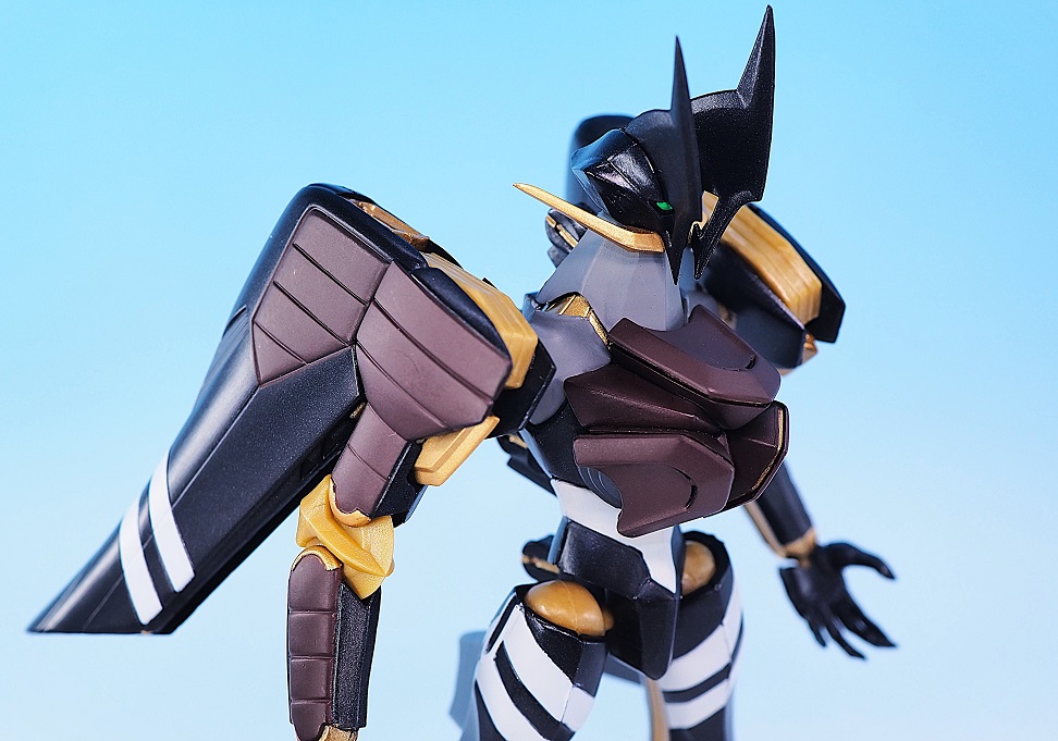 関節部は本来ならゴールドが正しい配色ですが、フィギュアでは可動を考えて黄土色の成形色になっています。