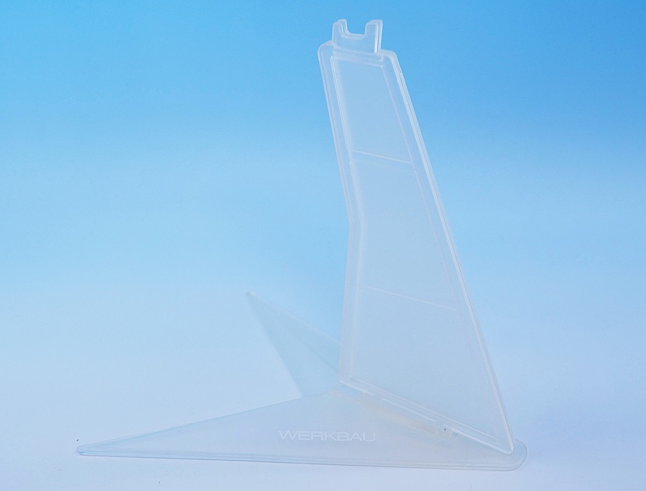 ベースに機体名がプリントされたクリア成形のスタンドが付属しています。