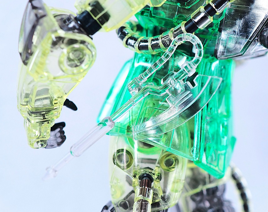今回はクリア成形なのでそれほど見た目が変わりませんが、カバーを取り外す事で内部メカディテールを楽しめます。