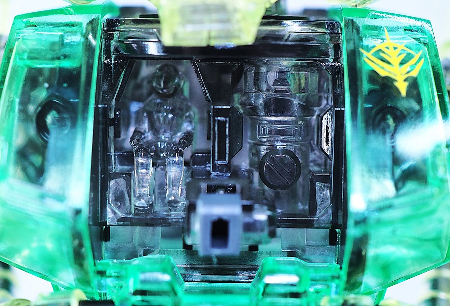 クリア成形なので見えにくいところではありますが、胸部内部にはパイロットの姿があります。