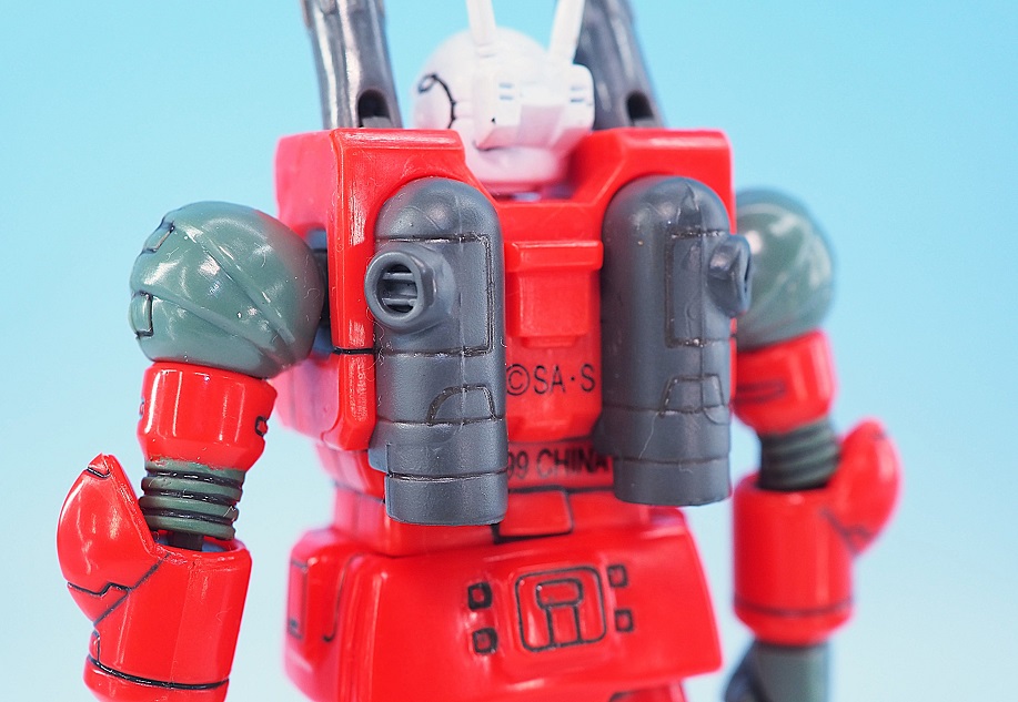 二の腕、肘関節下部分で左右にロールするので初期のインアクションとしてはザクやガンダムよりも動きますね。