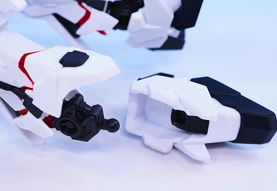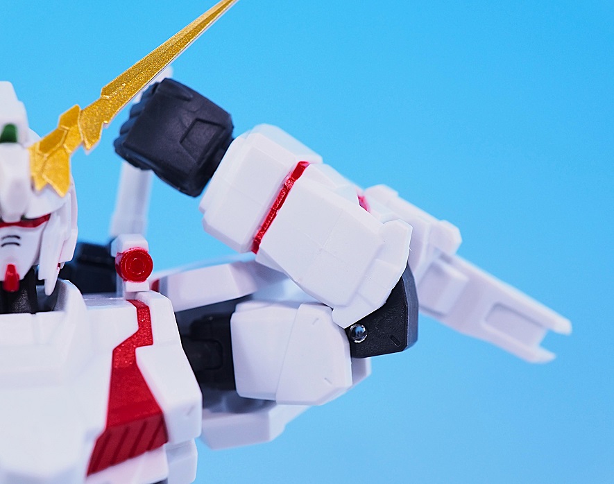肘のビームサーベルラック部分もだいぶデザインにアレンジが加えられています。