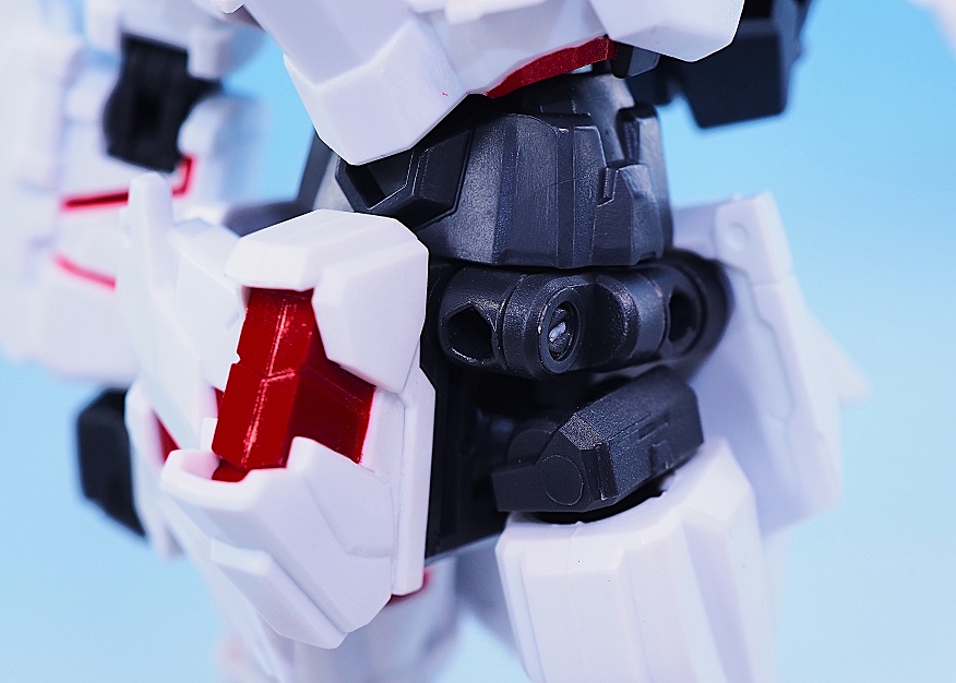 露出したサイコフレームはメタリックレットの塗装ですがパーツ分割されているので、色のはみ出しが無く綺麗な仕上がりです。