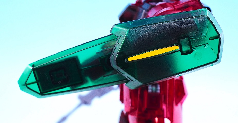 内蔵されたビームサーベルが少し透けて見える所もクリアカラー外装ならでは。