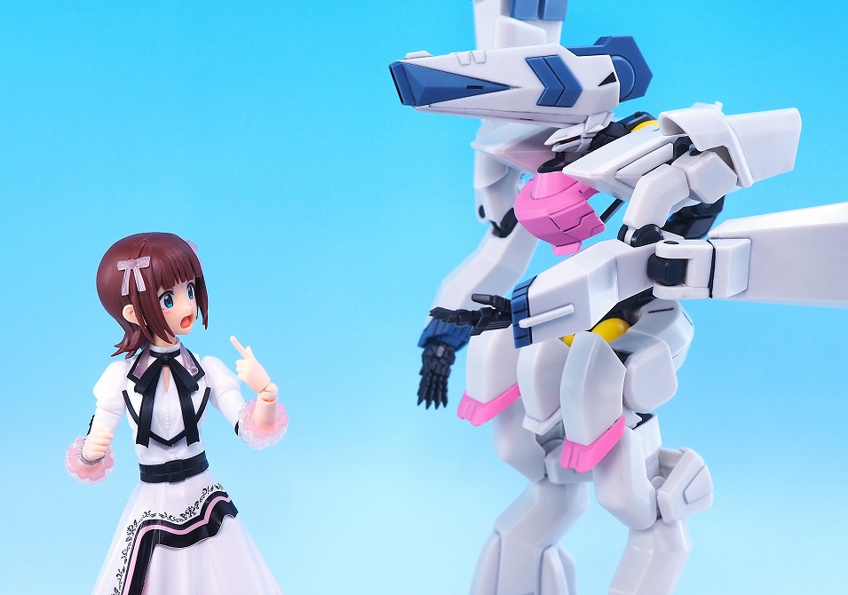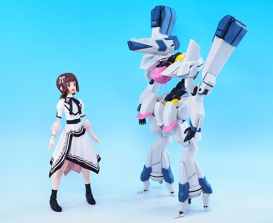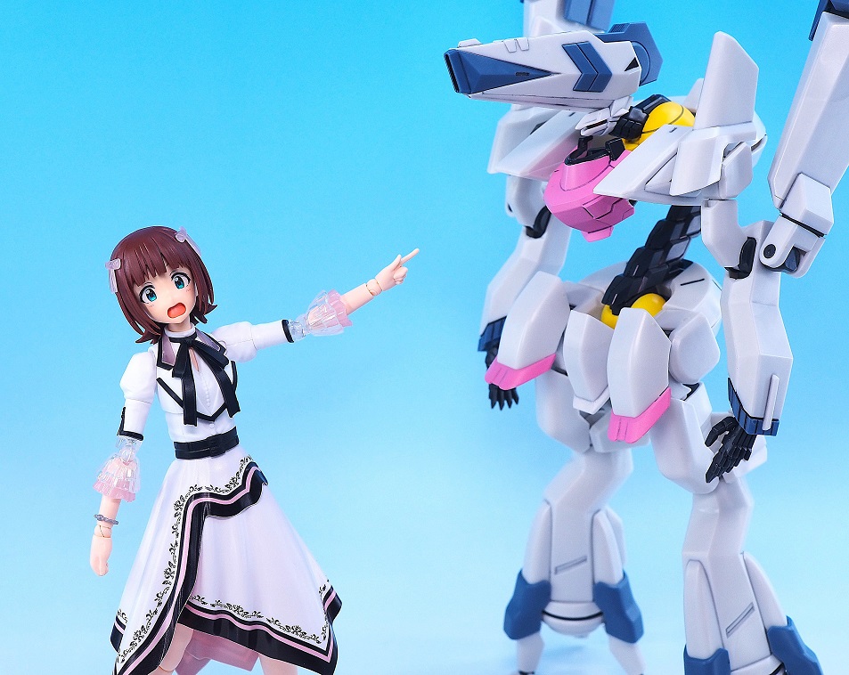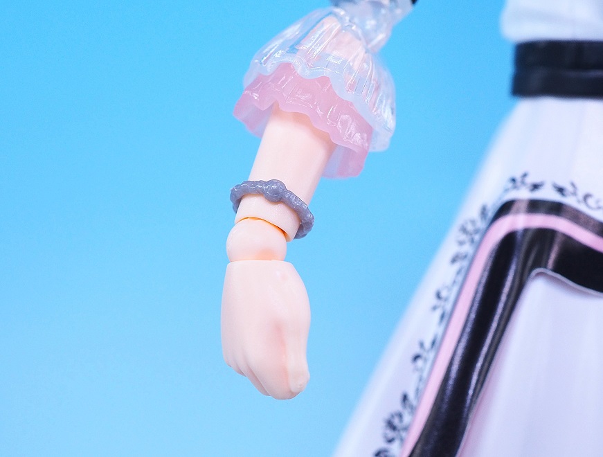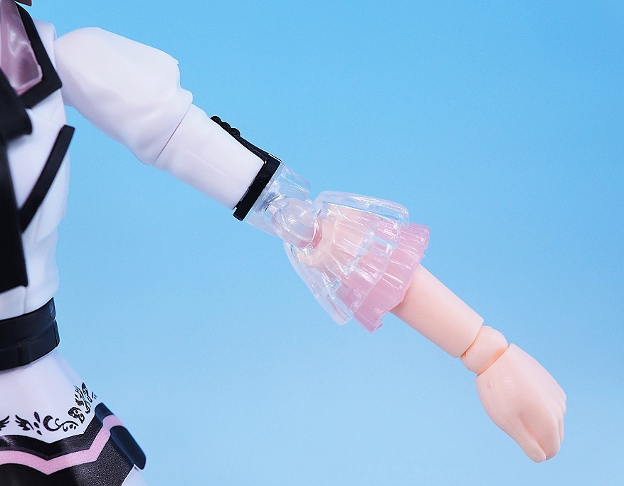肘関節とフリルがクリアパーツになっていて、こちらもイラストの透け感のある衣装が参考になっています。