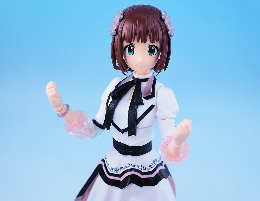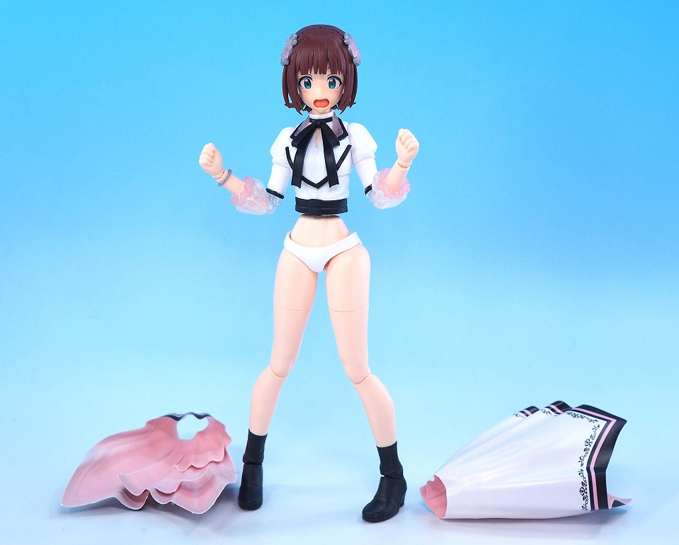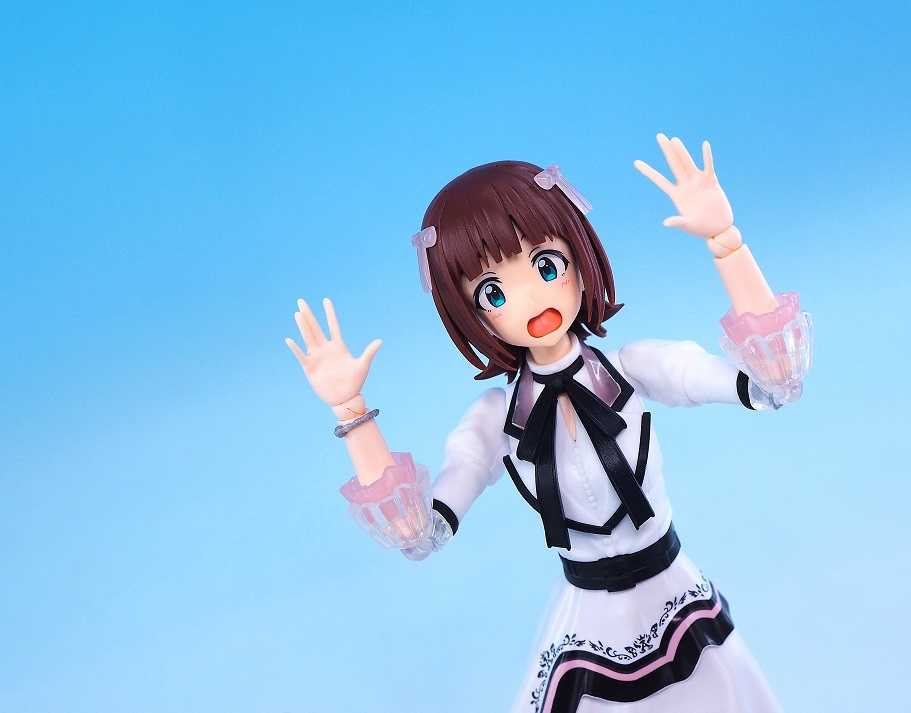 シャニマスの「ビヨンドザブルースカイ」よりもスカート丈が長いので、脚部は膝を少し曲げる程度しかできないと思います。
