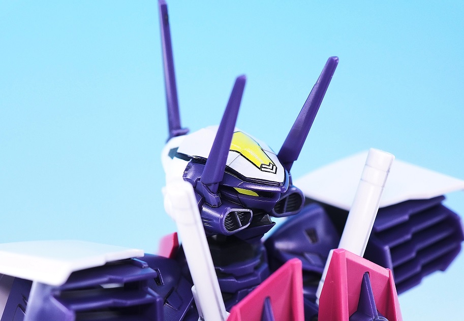 改造機という事でアストレイと同じ顔つきですが、大きな違いとして頭部にはアンテナが3本設置されています。