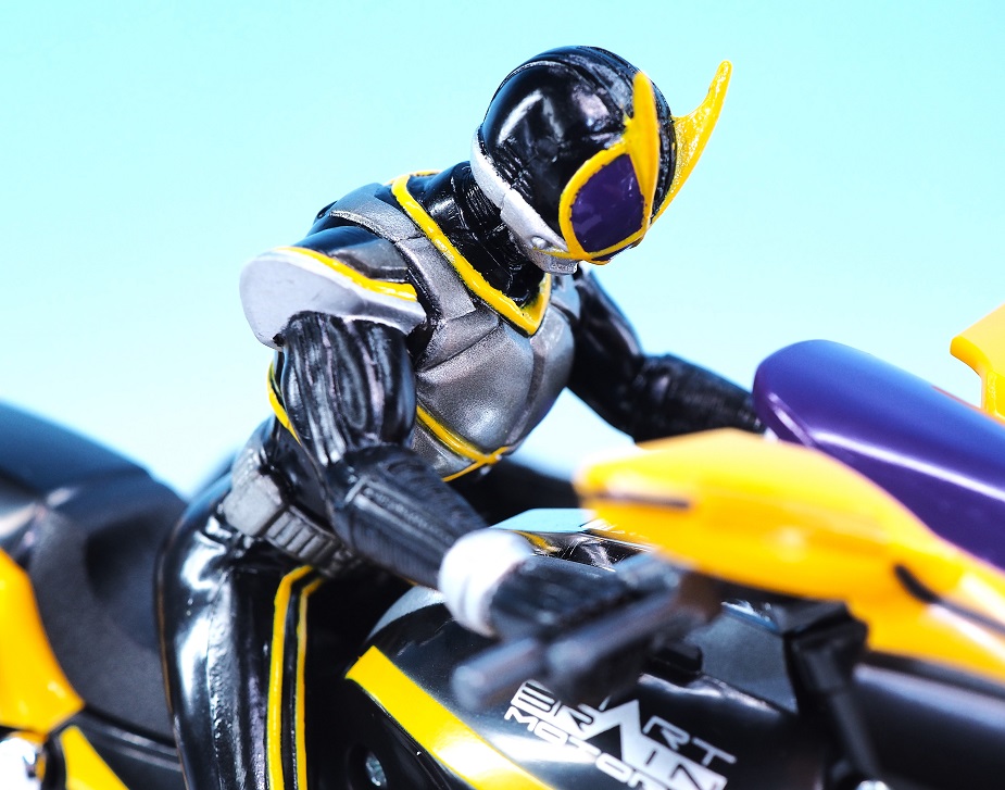 簡易的な固定フィギュアなので基本的にバイク搭乗時のポーズ以外は取らせることが出来ません。