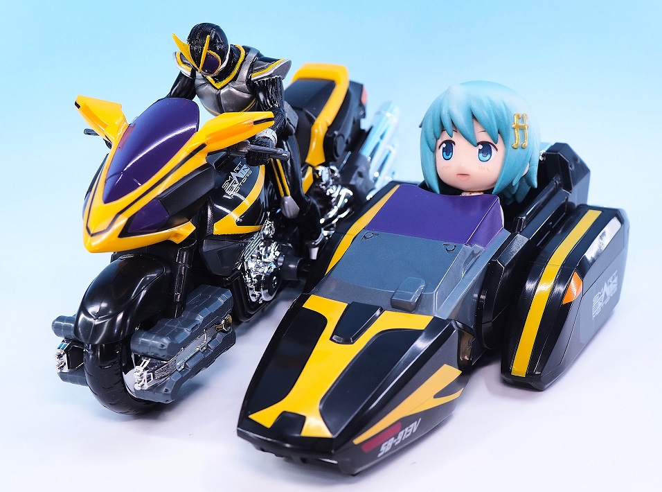 フィギュアに対してバイクがやや大きめに作られているので、乗せるなら装着変身シリーズのカイザがちょうどいいと思います。