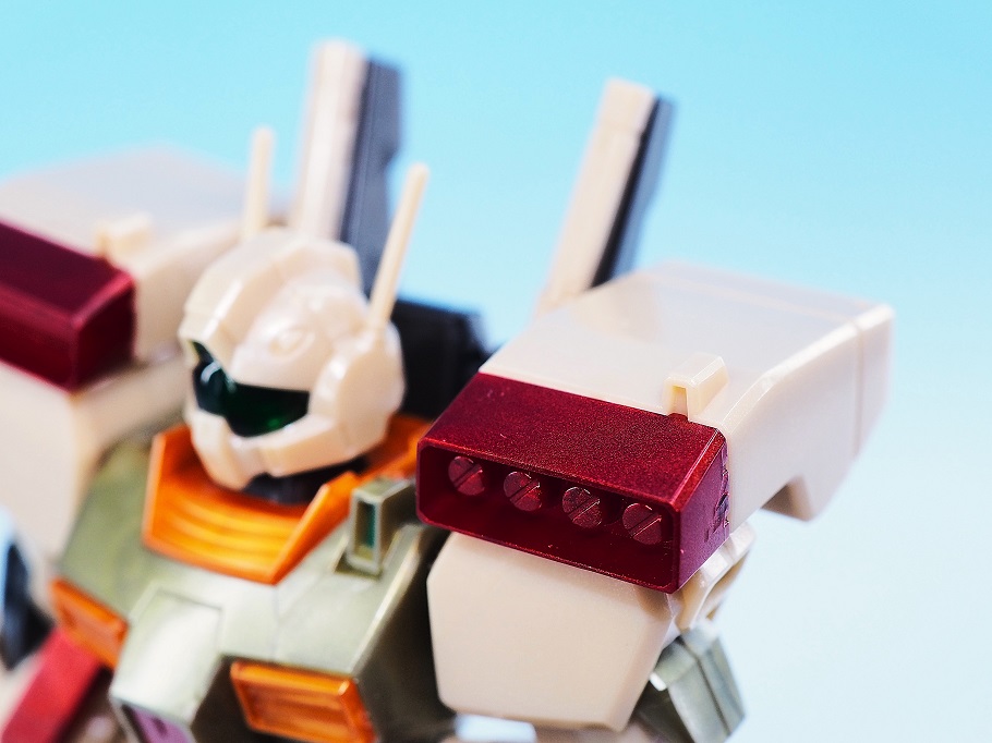 肩には「ミサイル・ポッド」を装備されていて、表面のパーツを付け替える事で換装可能な作りになっています。