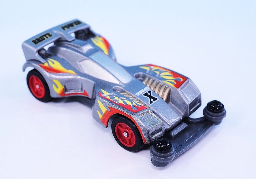 ブラックのボディと炎のデザインが印象的ですがトミカでは車体がシルバーなので結構イメージと違いますね。