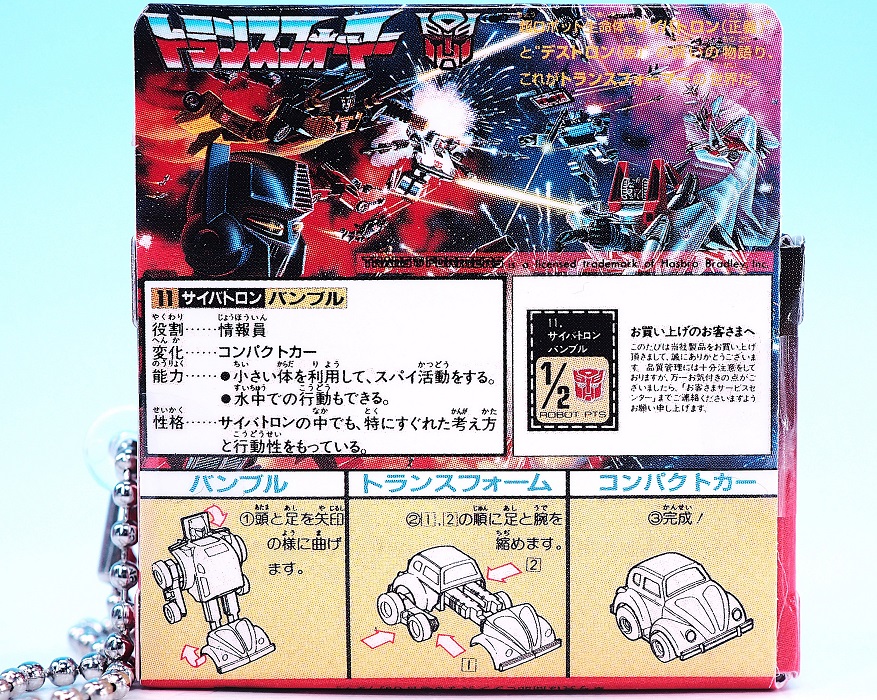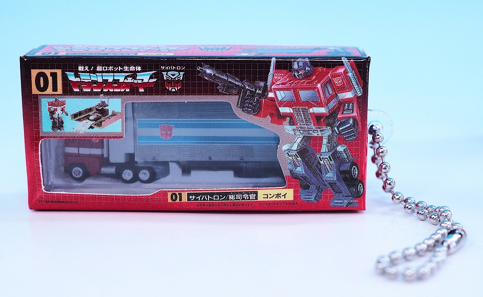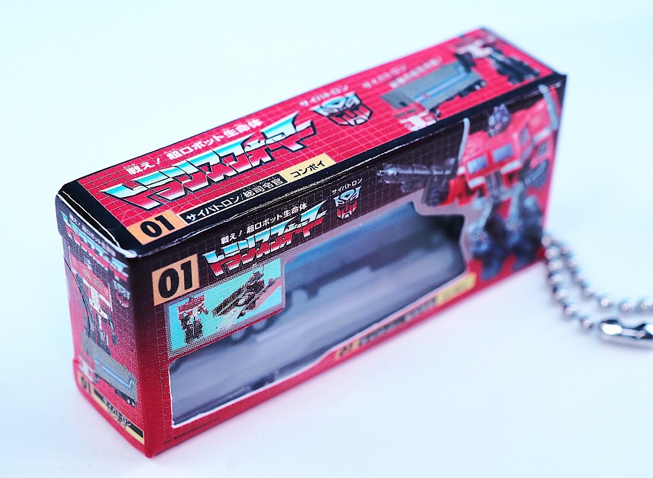 「トランスフォーマー」の初期パッケージを可能な限り再現したボールチェーン付きのミニチュアとなっております。