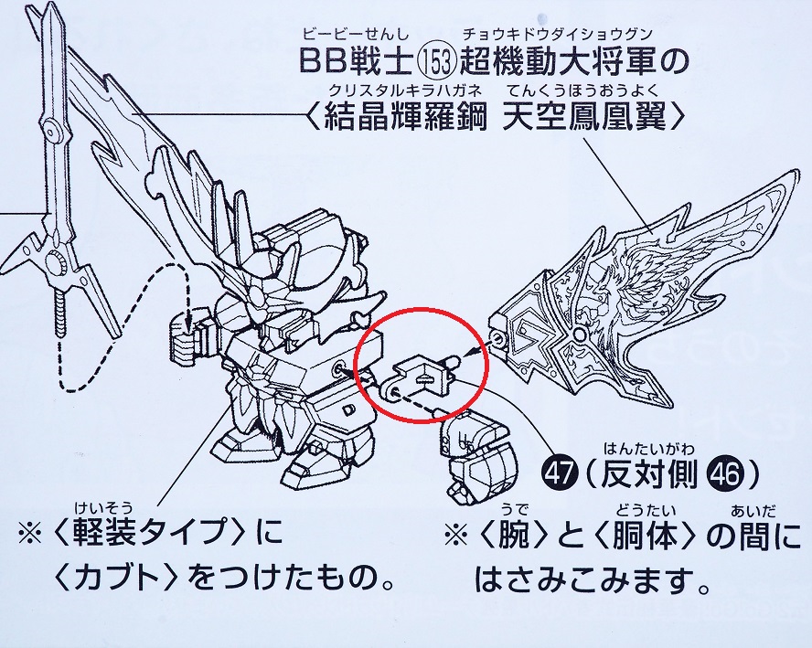前作のパーツを天零頑駄無に取り付ける際に使用します。(クリア成形だと見えにくいので説明書の図)