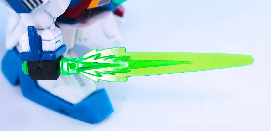 この手のキットだと武器はホワイト1色になりがちですが、ビームエフェクトに合わせたクリアカラーになっている所が非常に良いですね。