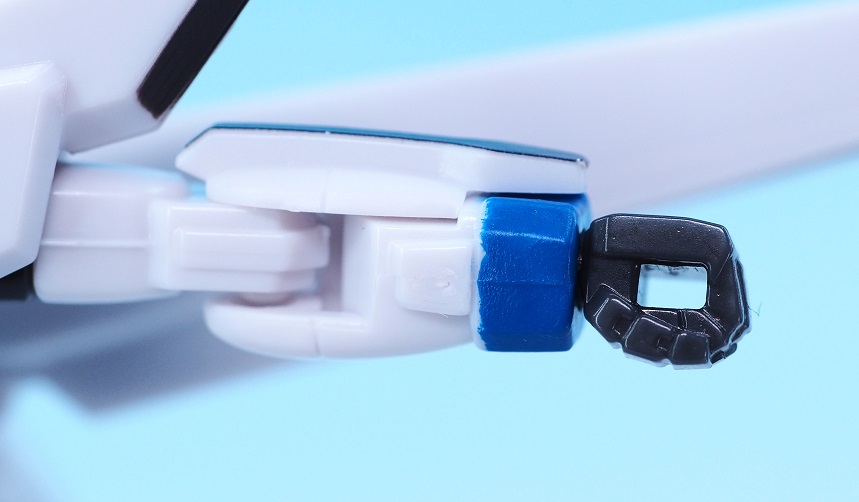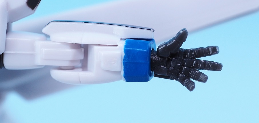 肩アーマーや腕の側面のブルーはシールによる色分け。